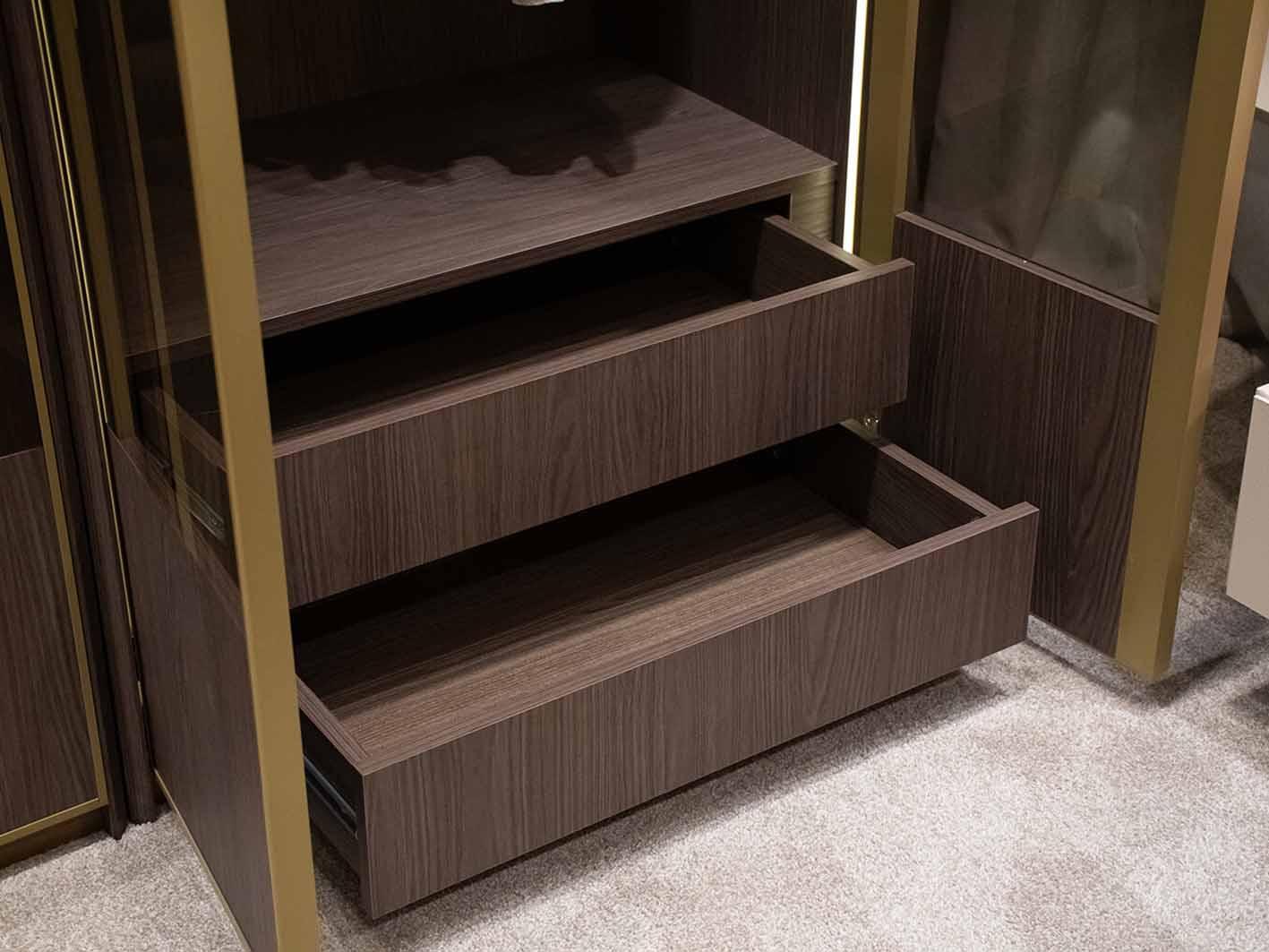 زجاج FUME GLASS الفاخر المقاوم للخدش يمنح الدولاب مظهراً فريداً.