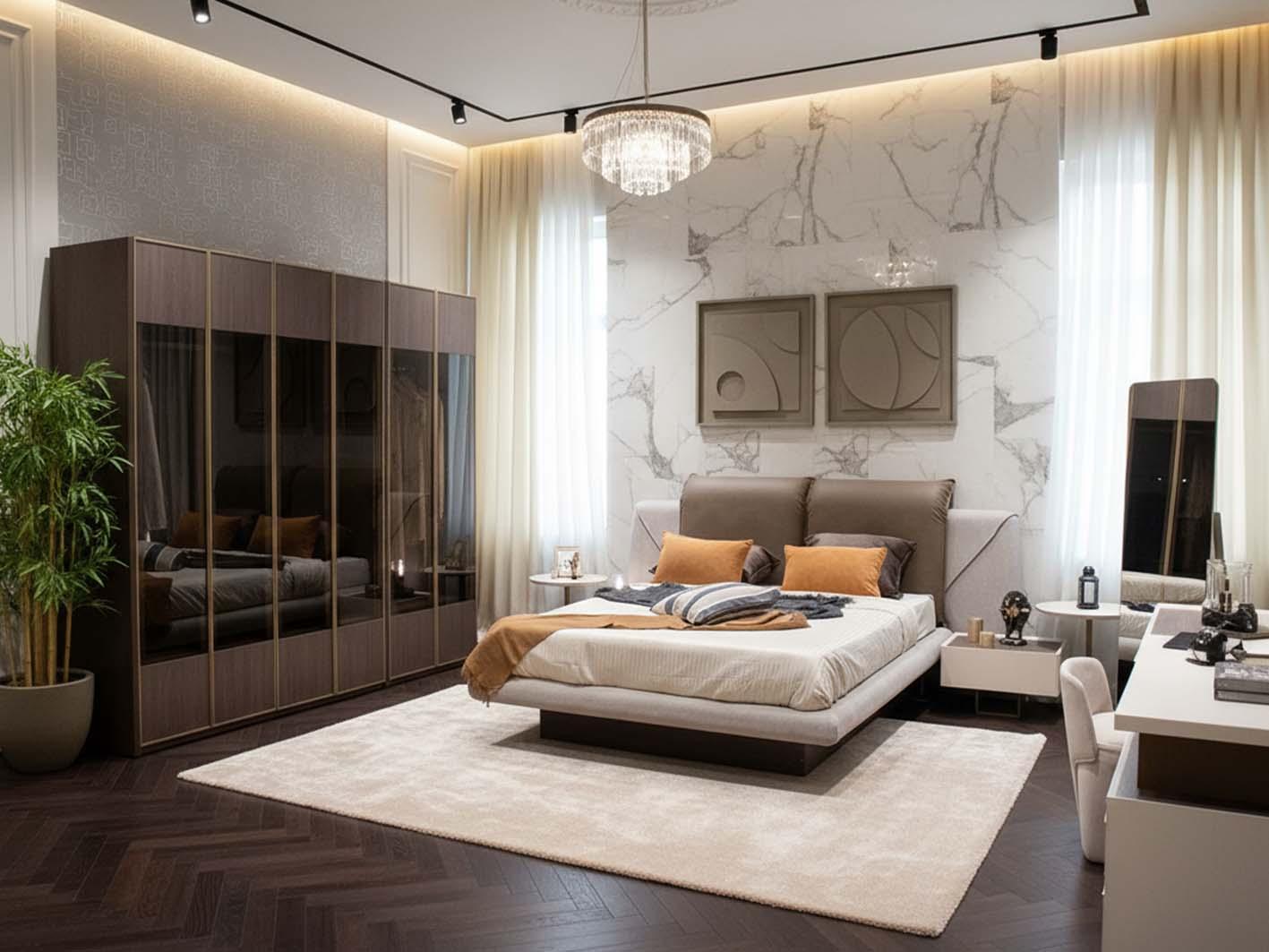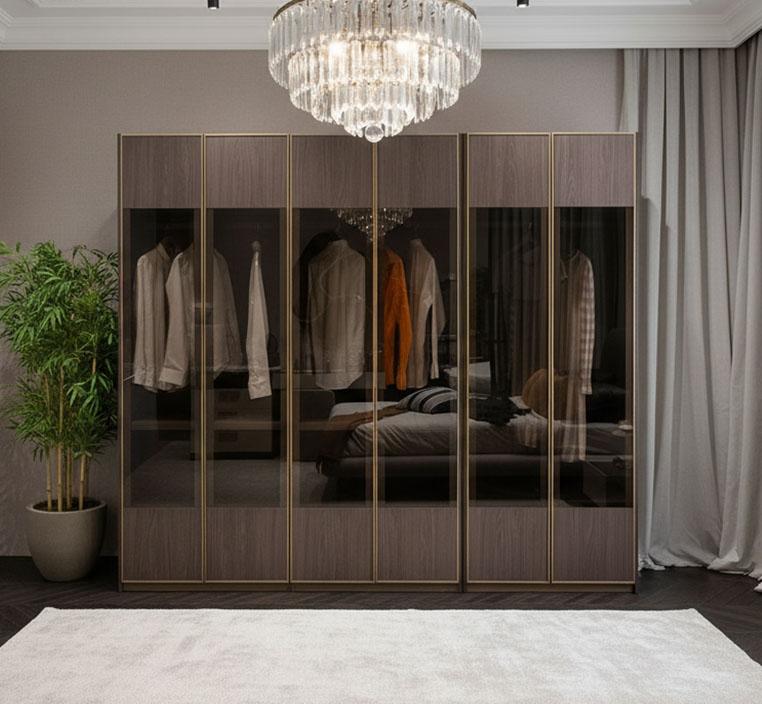 واجهات أنيقة بزجاج FUME GLASS تمنح الغرفة مظهرًا راقيًا.