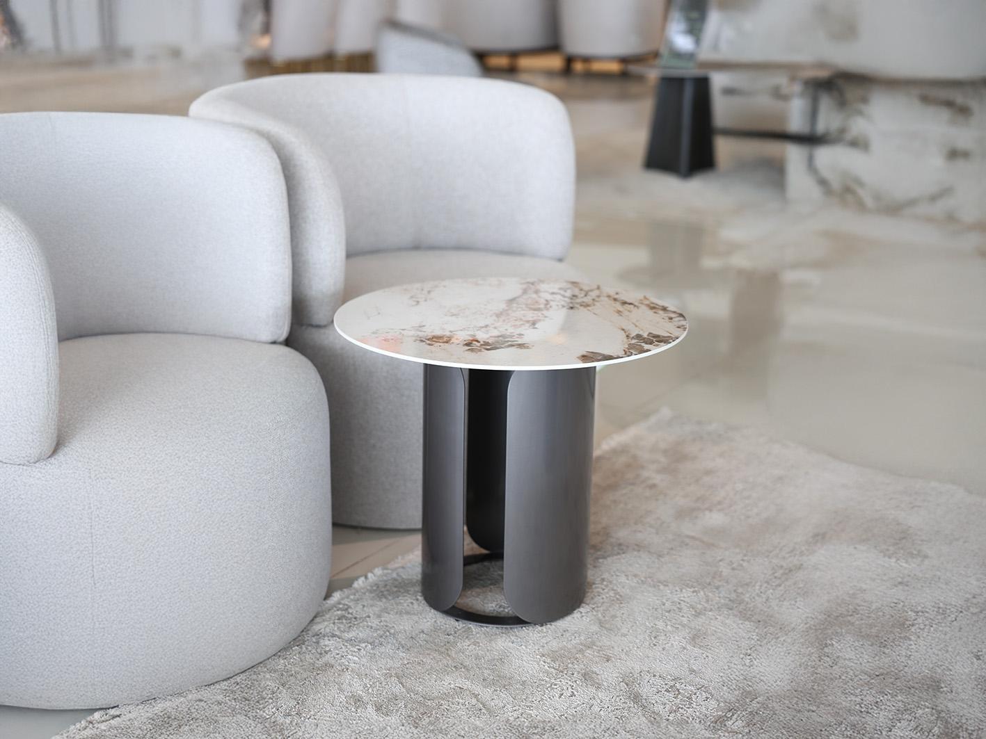 تمتاز انجيلو طاولة شاي جانبية بسطح بورسلان عالي الجودة يمنحها مظهرًا أنيقًا وعصريًا، بالإضافة إلى ملمس ناعم يعكس الفخامة والرقي. يتميز سطح الطاولة بمقاومته للخدوش والبقع، مما يجعله خيارًا مثاليًا للاستخدام اليومي، سواء لتقديم الشاي والقهوة أو كمساحة لعرض الديكورات والإكسسوارات المنزلية.