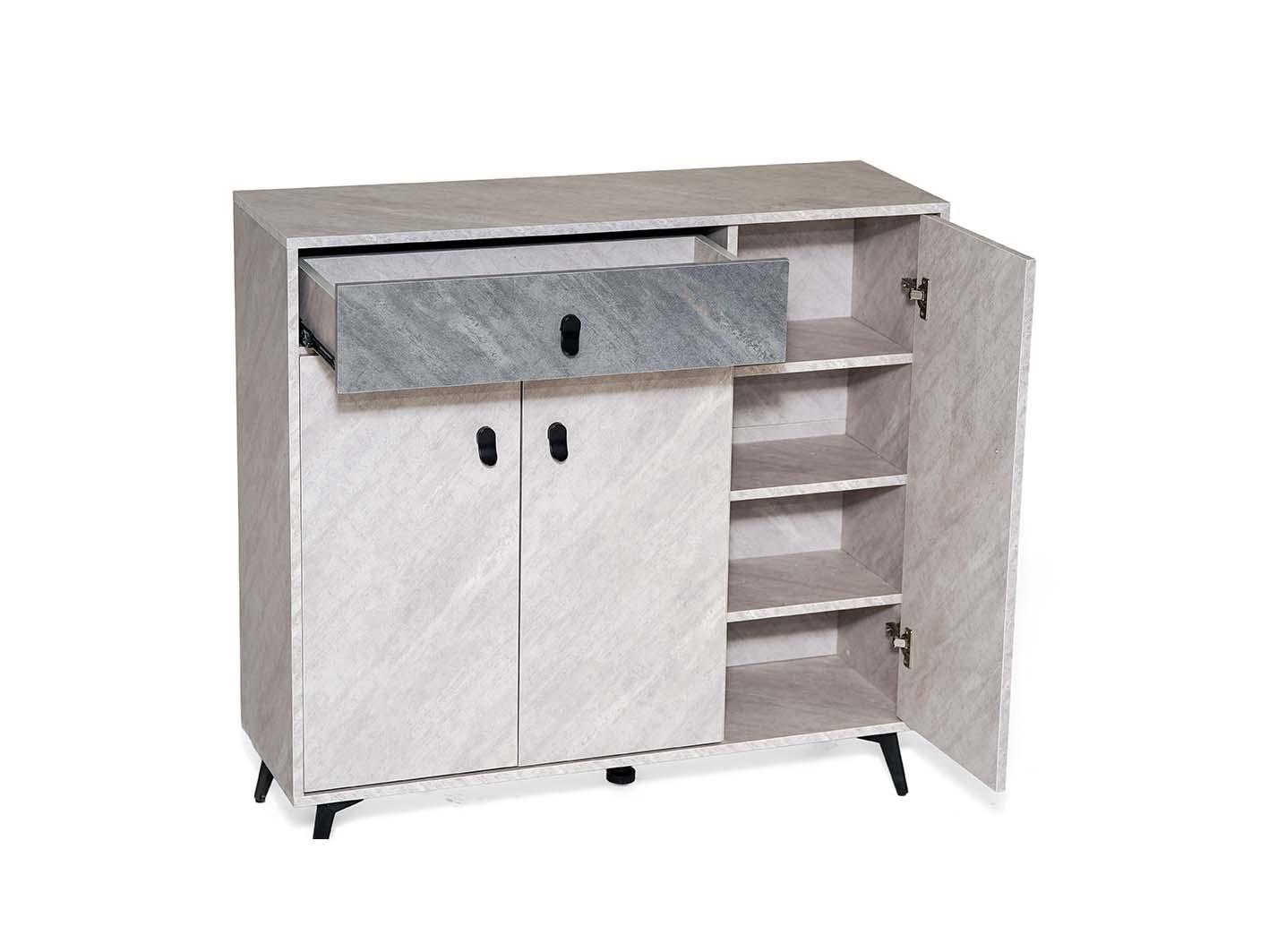 يتميز بثلاثة أبواب واسعة لتخزين الملابس والأغراض الشخصية بسهولة، بالإضافة إلى درجين داخليين مثاليين لتخزين الإكسسوارات الصغيرة مثل الأحزمة والمجوهرات والأغراض اليومية. هذا التوازن بين الأبواب والدرجين يعزز الوظيفة العملية دون التضحية بالأناقة، ويجعل كل شيء مرتبًا وفي متناول يدك.