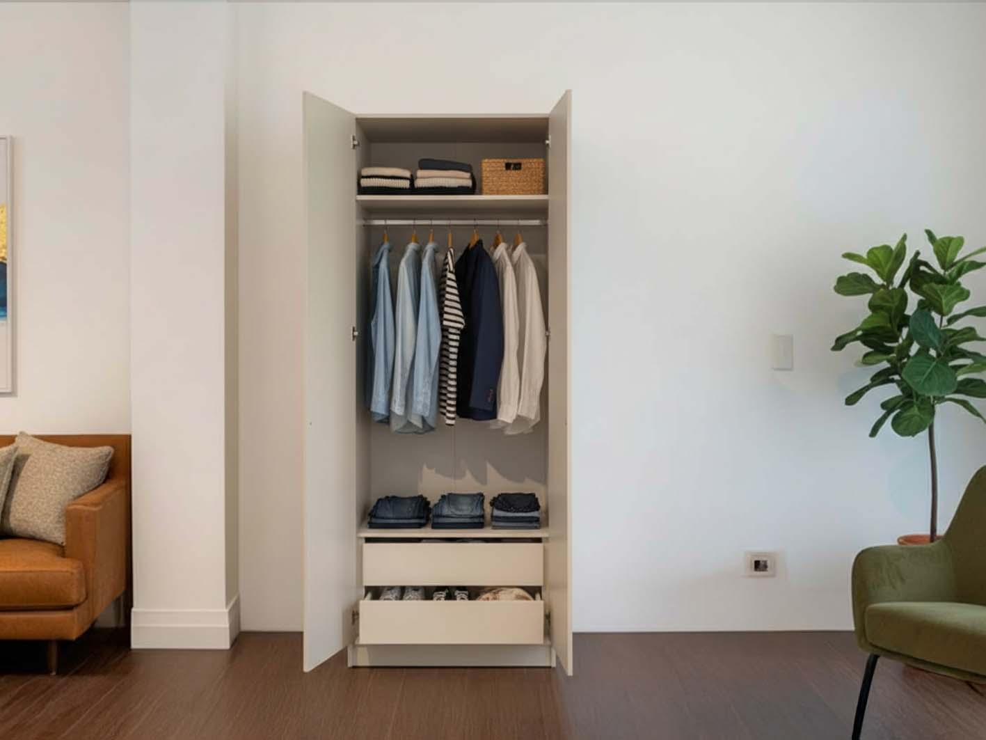 يوفر مزيجاً مثالياً من الأرفف والأدراج وقضيب تعليق الملابس لتخزين وتنظيم جميع احتياجاتك اليومية بسهولة.