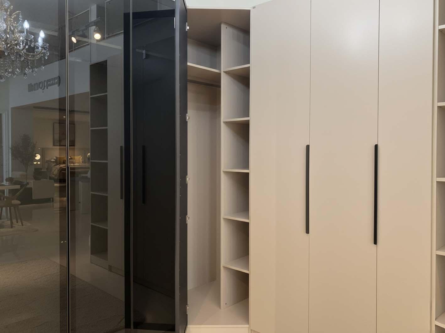 يأتي الدولاب بطول 95 سم × عرض 95 سم × عمق 60 سم × ارتفاع 240 سم. بذلك، يستفيد من الزاوية بشكل ذكي ويتيح مساحة واسعة لتخزين الملابس والمستلزمات اليومية.