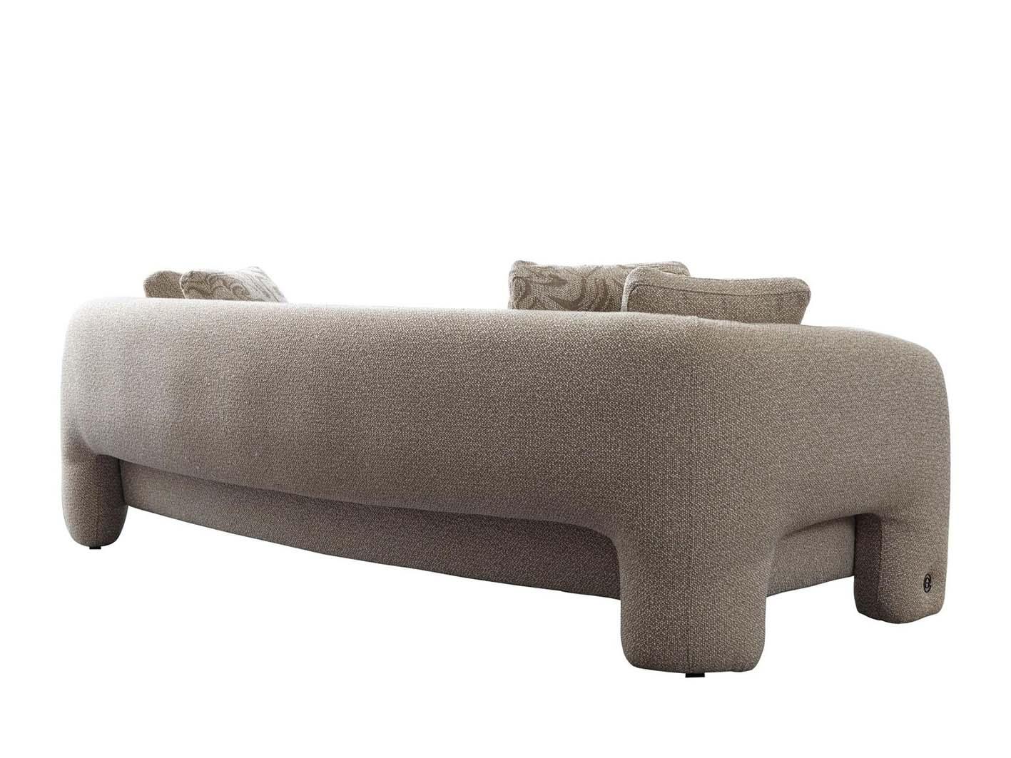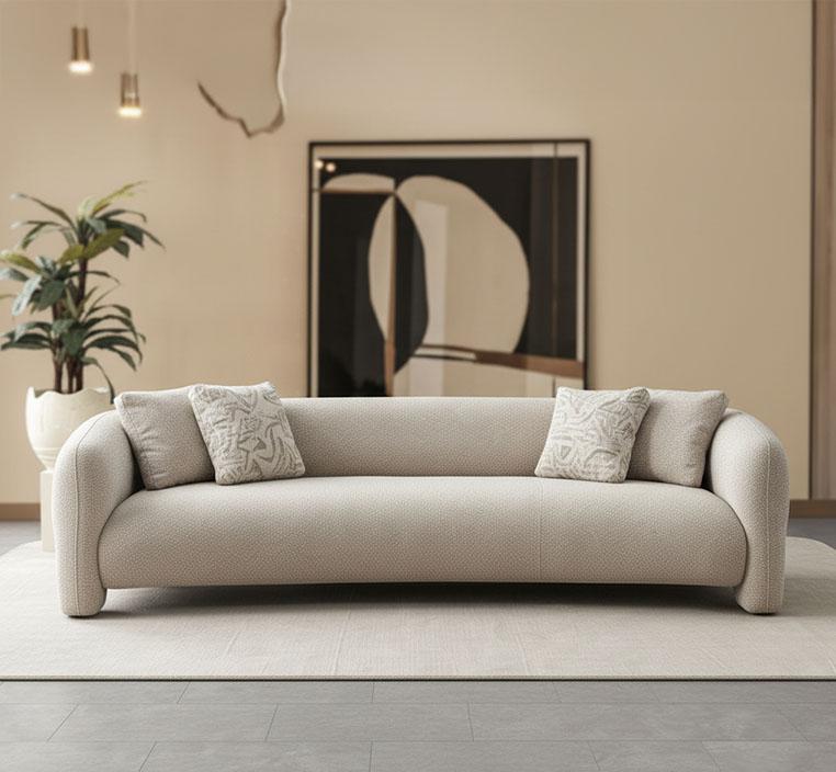 يتميز الكنب بخطوط تصميم واضحة وانحناءات ناعمة تضيف توازنًا بصريًا جذابًا. استخدم في تنجيده قماش فاخر عالي الجودة يتميز بملمسه الناعم ومظهره الأنيق. الألوان غنية وثابتة تمنح الغرفة طابعًا دافئًا ومتناسقًا. يضيف القماش إحساسًا بالرفاهية ويجعل الجلسة مريحة وممتعة.