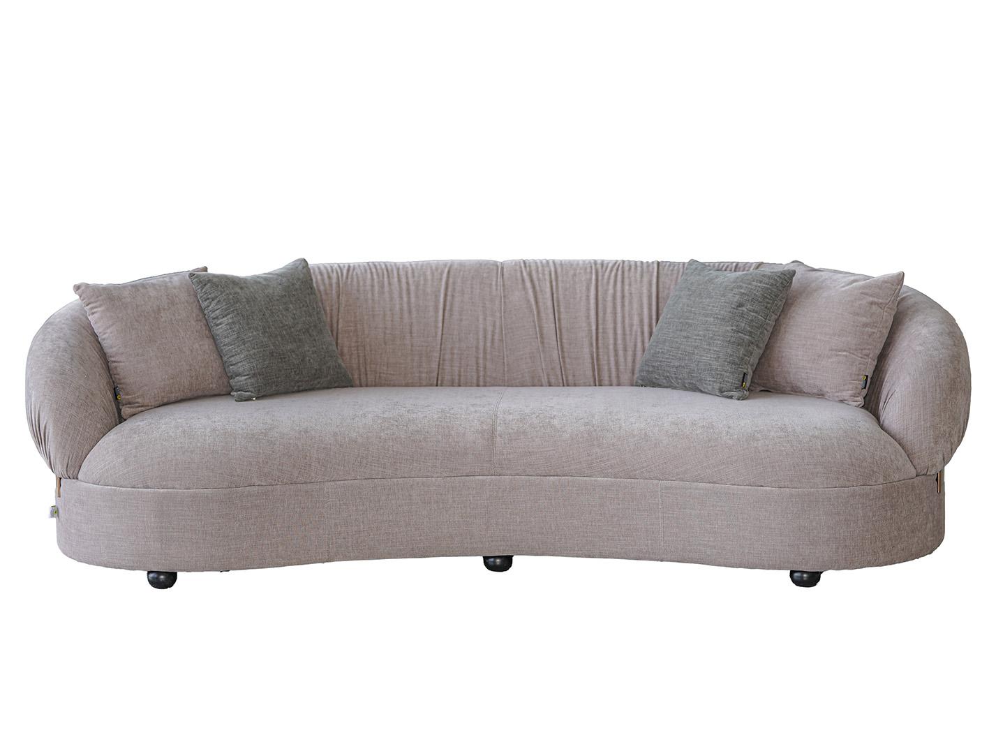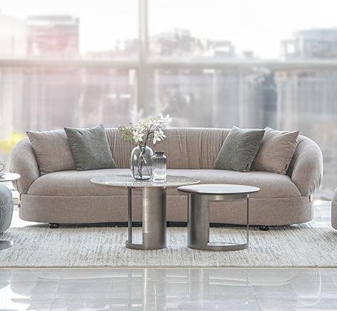 تتميز الكنبة بتصميمها المنحني الرائع الذي يضفي لمسة من الأناقة والجاذبية على أي مساحة. يمنح شكلها الانسيابي مظهراً راقياً يعزز جمالية ديكور غرفة المعيشة، مما يجعلها قطعة محورية تضفي طابعاً فخماً ومتناغماً في منزلك.