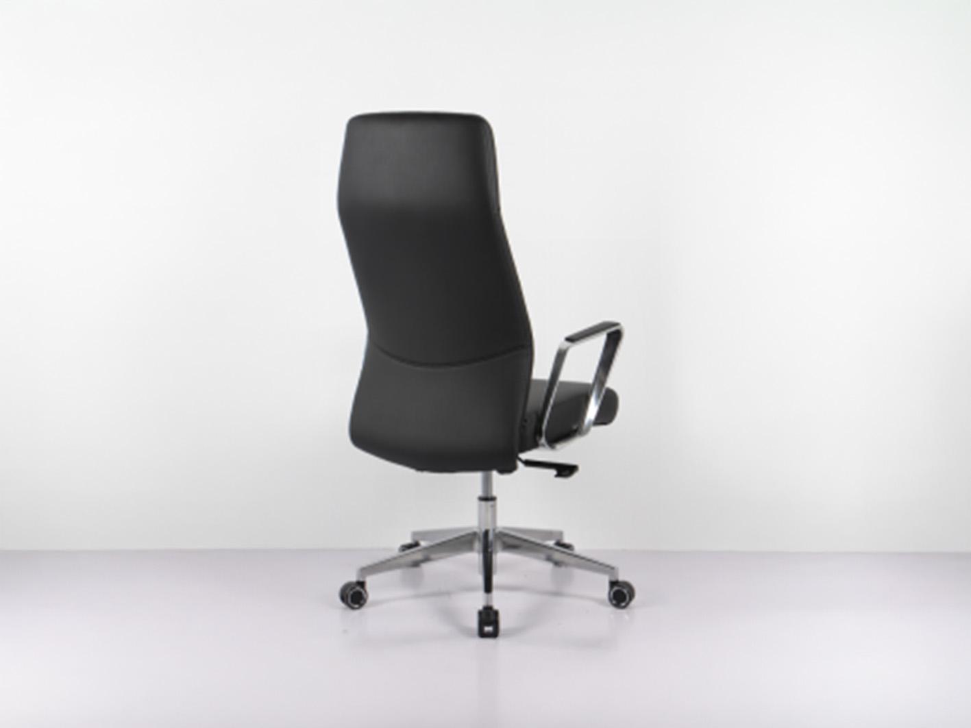 الكرسي مزود بظهر مرتفع مصنوع من هيكل فولاذي قوي مع حشوة فوم مصبوب عالية الكثافة، مغطى بجلد صناعي فاخر يمنحك دعماً متيناً مع لمسة فاخرة. التصميم يضمن راحة للظهر والعمود الفقري حتى مع الجلوس لفترات طويلة.