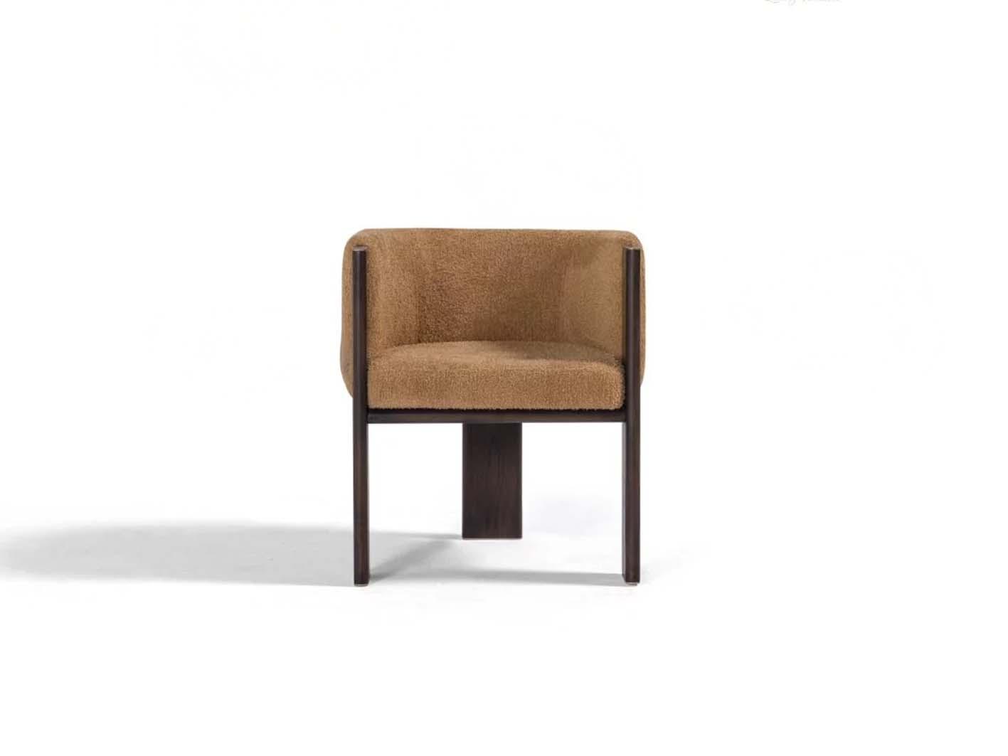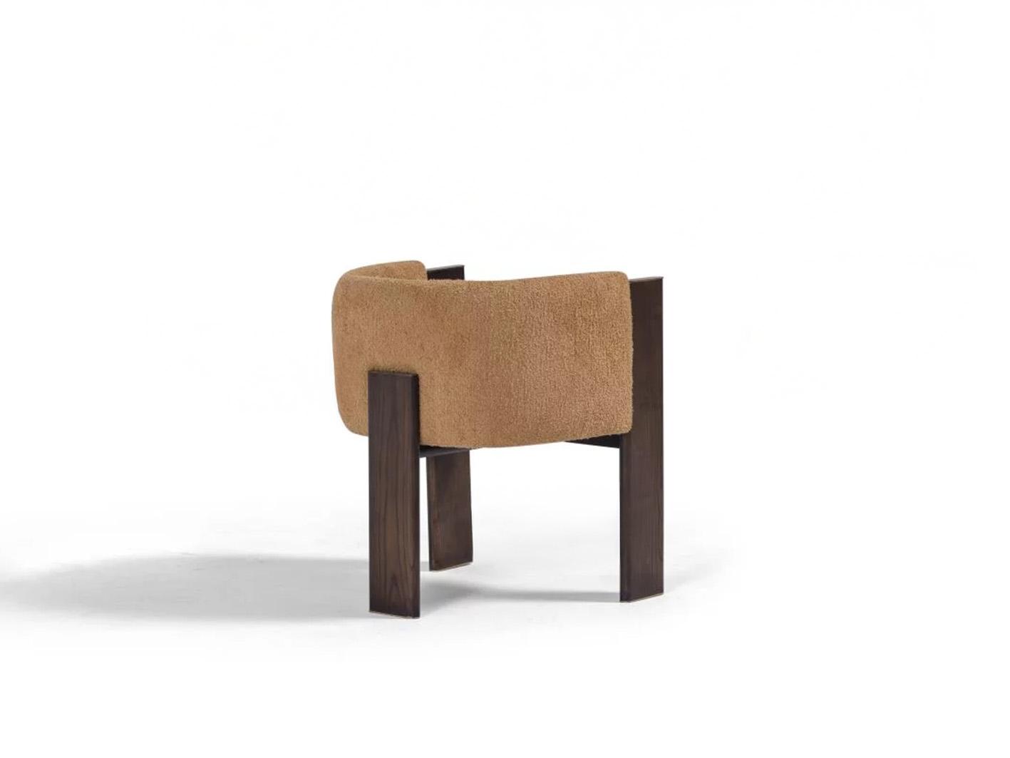 وقد تم اختيار خامة البوكليه الفاخرة بعناية لتنجيد الكرسي، حيث تمنح الملمس الناعم والإحساس بالدفء والراحة. اللون البيج الترابي يعزز من أناقة التصميم ويُكسبه مرونة في التنسيق مع مختلف الألوان والأنماط. كما يمنح نسيج البوكليه إحساسًا بالثراء الحسي ويُضفي على الكرسي طابعًا عصريًا لا يُقاوم.