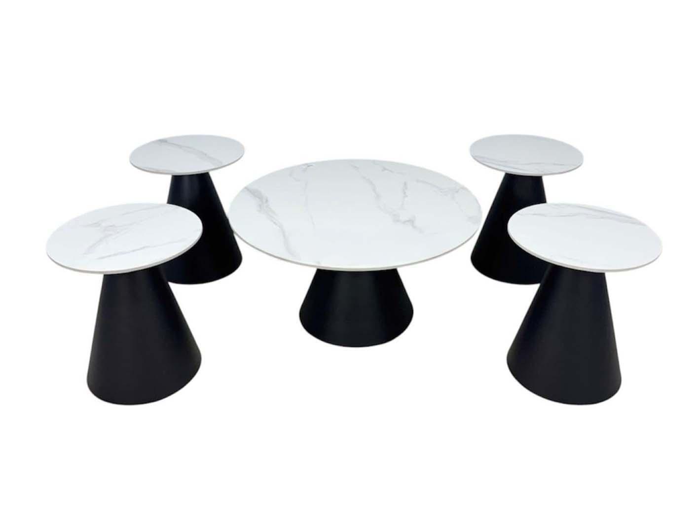 يأتي الطقم مكونًا من خمس طاولات دائرية بأحجام مختلفة، ما يمنحك حرية كاملة في ترتيبها حسب المساحة لديك. يمكنك دمجها لتشكيل طاولة مركزية أنيقة في غرفة المعيشة، أو توزيعها في أرجاء المكان للحصول على لمسات ديكور إضافية.