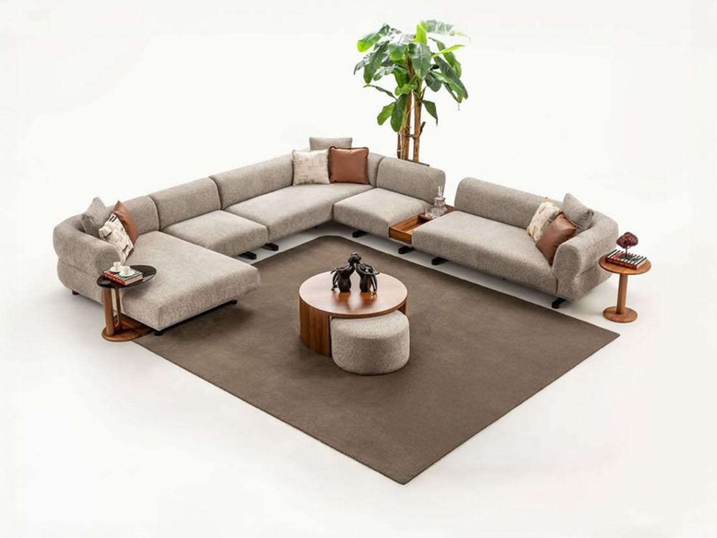 يتميز الكنب بإمكانية ترتيب أجزائه بعدة طرق لتتناسب مع ذوقك واحتياجاتك، سواء أردتِ زاوية دافئة تجمع أفراد العائلة أو تكوين أنيق على شكل U يمنح الغرفة لمسة من الفخامة العملية.