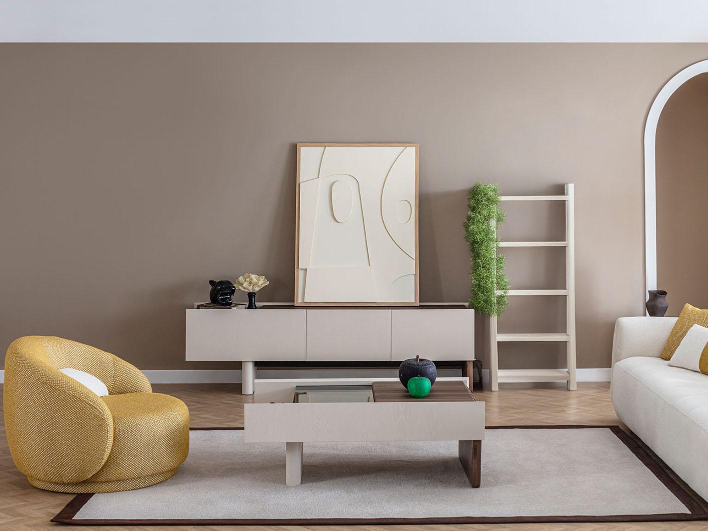 4. لون متناسق: مزيج اللون الكريمي مع لمسات خشبية داكنة يضيف دفئًا وأناقة للمساحات الداخلية.
