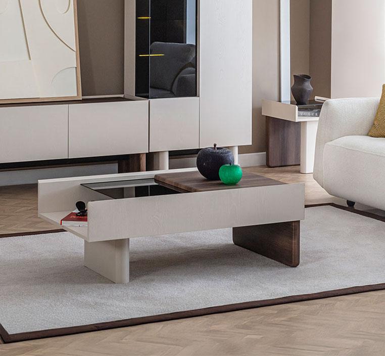 تُعد طاولة قهوة عملية بونتي قطعة أثاث مثالية تجمع بين التصميم العصري والوظيفة العملية. صُممت لتتناسب مع مختلف الديكورات المنزلية، مما يجعلها خيارًا مثاليًا لإضافة لمسة من الجمال والتنظيم إلى منزلك.توفر مساحة سطحية مثالية لوضع المشروبات، الكتب، أو الزخارف. كما تحتوي على تصميم ذكي يتيح الاستخدام كمساحة تخزين .