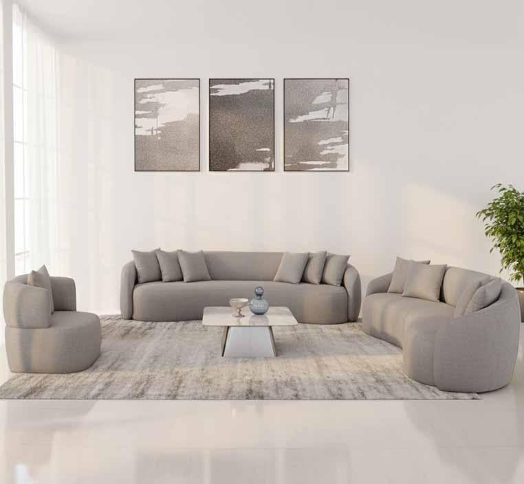 6. تناسب جميع المساحات: تصميم الطقم يجعله مناسبًا للمساحات المتوسطة والكبيرة، مع توزيع مثالي للقطع الثلاثة لتوفير تجربة جلوس متكاملة.
