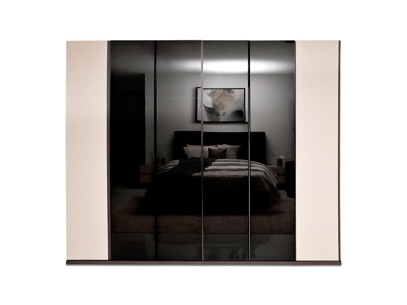 يتضمن التصميم أربعة أبواب من الزجاج الداكن، تضفي لمسة من الرقي وتزيد من عمق التصميم، وتوفر في الوقت نفسه لمسة من الخصوصية دون أن تفقد الغرفة إضاءتها الطبيعية. تم تصميم هذا الدولاب في تركيا، مما يضمن دقة التصنيع والعناية بالتفاصيل التي تعزز من جودته واستدامته.