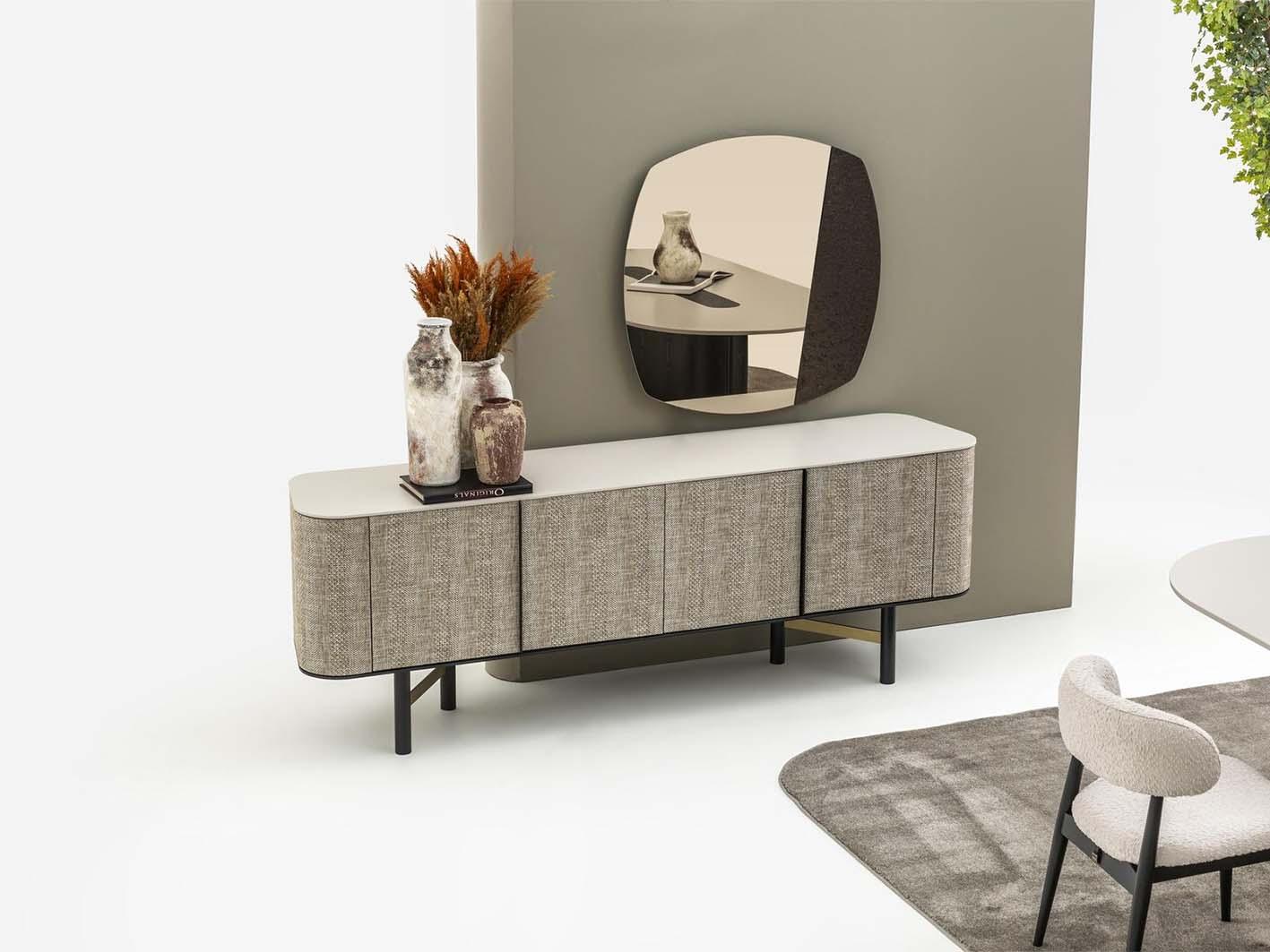 يأتي الكونسول بمساحة سطح رحبة تُستخدم للعرض أو التخزين، بينما تضيف المرآة بعدًا بصريًا واتساعًا للمكان.