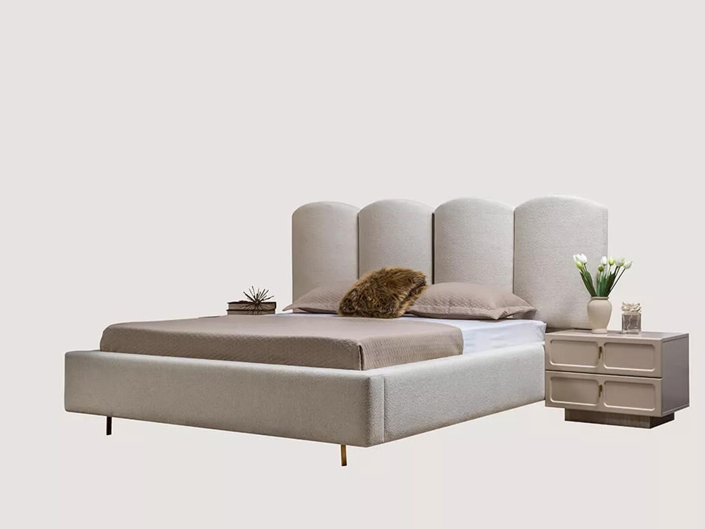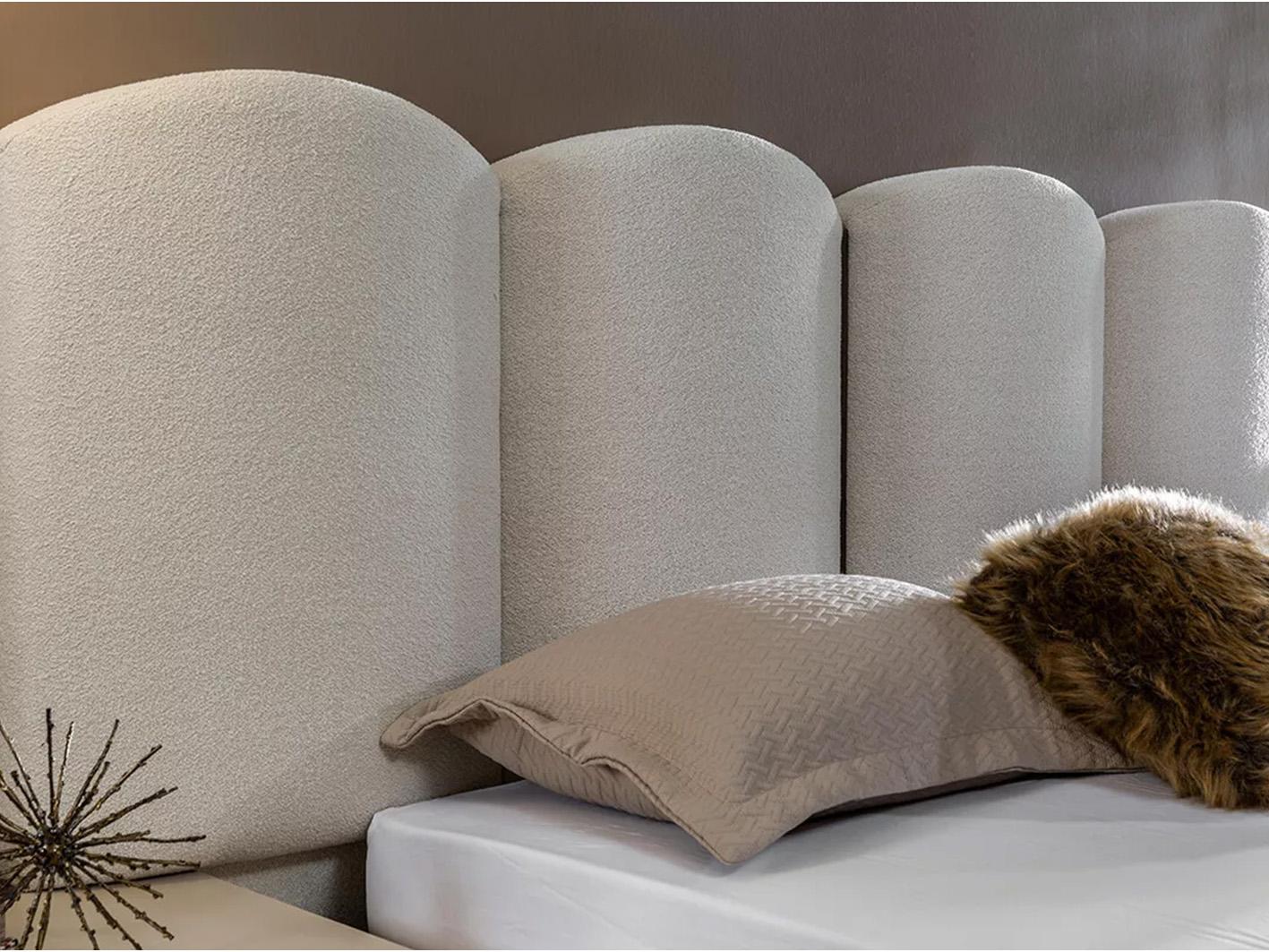 تصميم فاخر: يتألف الطقم من سرير مزدوج 200 × 200 سم منجد بقماش فاخر.