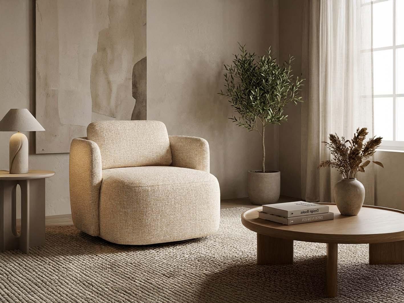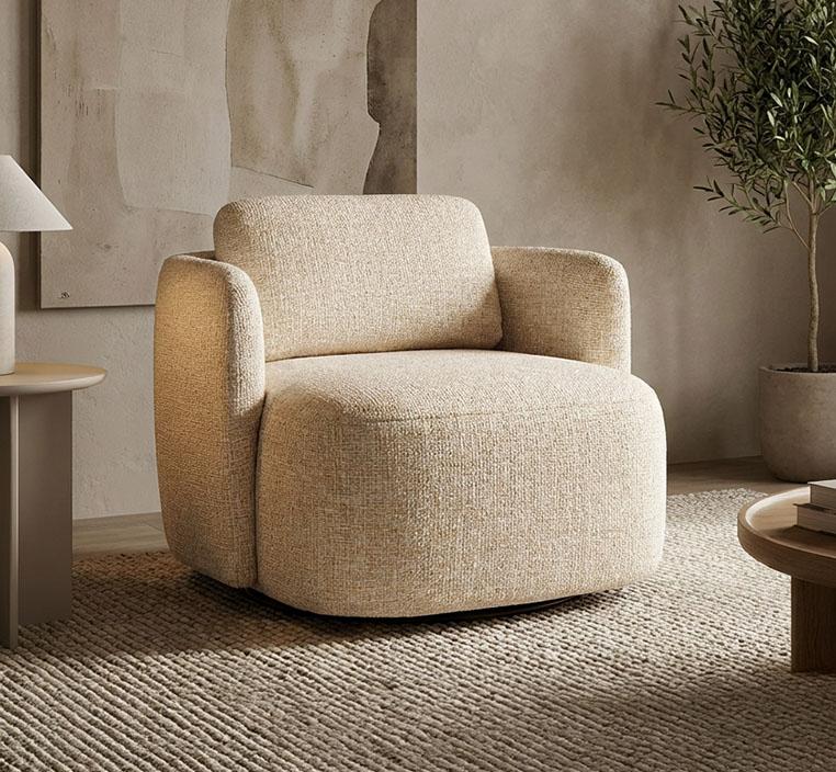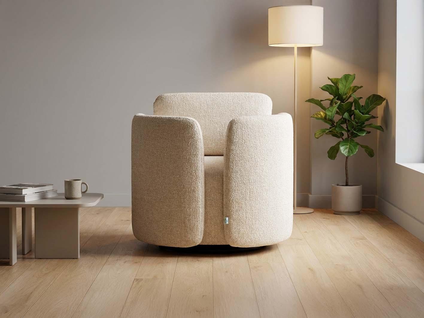 يحتوي الكنب على دوّار سهل الحركة يتيح لك تغيير اتجاه الجلوس دون الحاجة لتحريك الكرسي بالكامل. هذه الميزة تجعل المقعد عمليًا في جلسات الضيوف أو أثناء مشاهدة التلفاز، كما تضيف عنصرًا تفاعليًا ممتعًا للاستخدام اليومي.