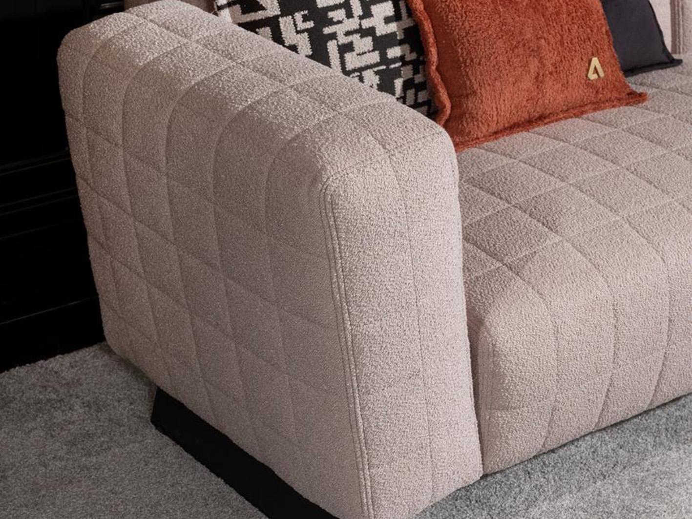 تجسد هذه الكنبة الفاخرة ذات الثلاثة مقاعد جوهر التصميم الحديث , يعد كنب مودرن فورينزا إضافة رائعة لغرفة المعيشة الأنيقة الخاصة بك وتعدك بإحساس دافئ بسبب إسفنج البولي يوريثان وألياف البوليستر وحشو المقعد. تتميز بتنجيد من القماش الناعم ومساند للأذرع مائلة للخارج قليلا تعطي شكلا مميزا للكنبة، في حين أن ظهرها المستقيم وأرجلها المغايرة المصممة بشكل رائع من خامة الاستنلس ستيل ترفع من مظهرها وتزيد من ثباتها وتحملها. تتميز هذه الكنبة العصرية بتشكيلة من الخداديات الرائعة والخفيفة التي تتمشي مع الديكورات المختلفة. انها استثمار رائع لغرفة معيشتك .