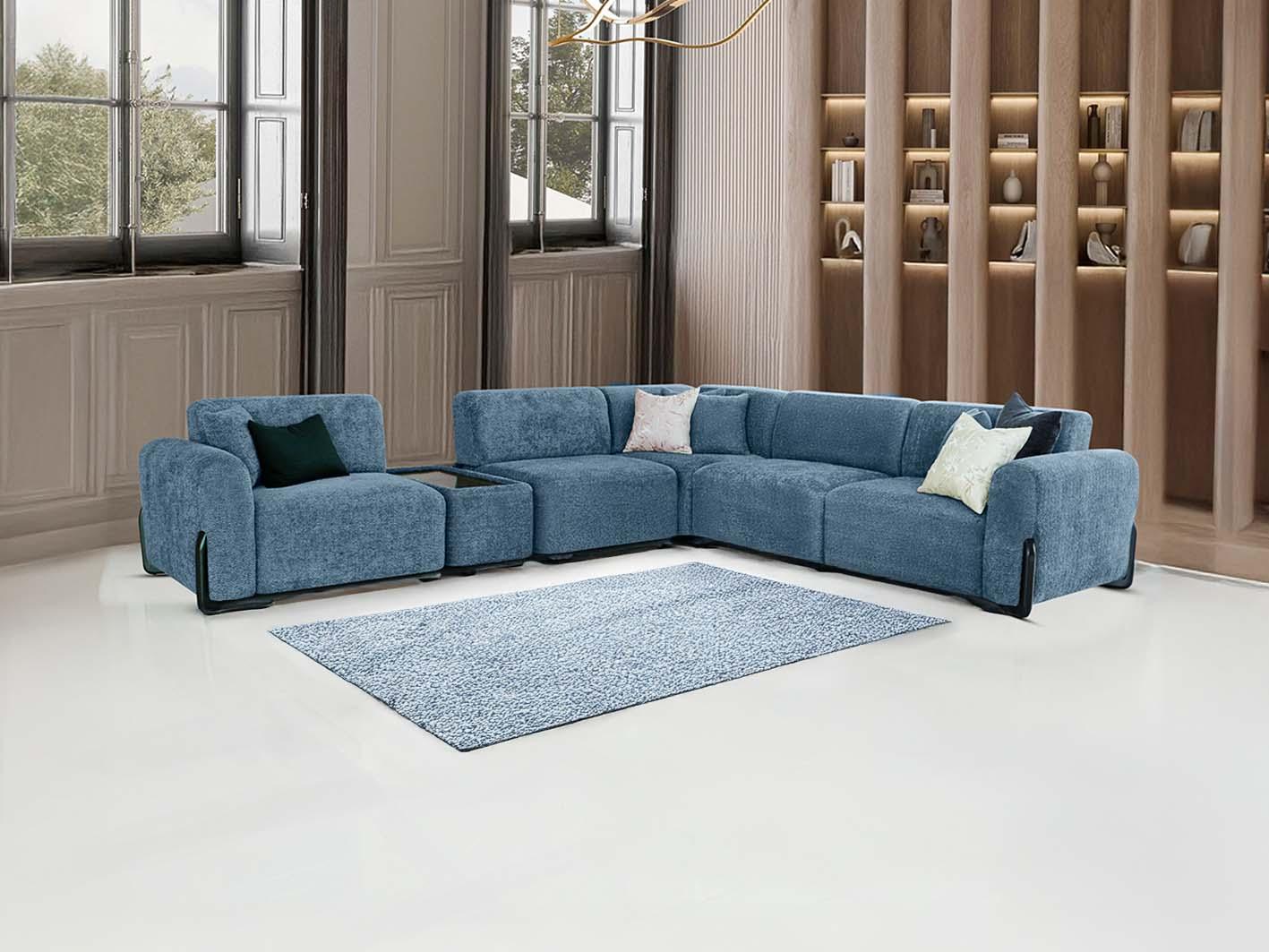 3. تنجيد قماشي ناعم تتمتع الطاولة بتفاصيل تنجيد من قماش البوكلية الناعم الذي يميز مجموعة فيولا، مما يضيف لمسة من النعومة والفخامة لتتماشى مع الكنبة الزاوية بشكل مثالي.
