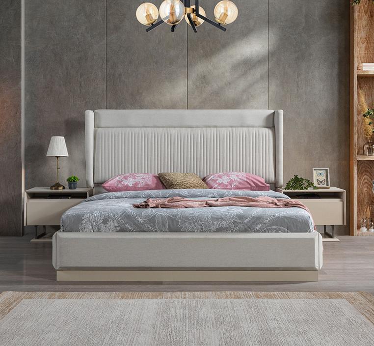 طقم إيليف يأتي بلون كريمي ناعم يضفي إحساسًا بالراحة والسكينة، مما يجعله مناسبًا لكافة أنماط الديكور. سواء كنت تفضل النمط العصري أو الكلاسيكي، فإن هذه الألوان الهادئة تضيف لمسة من الانسجام والرقي لغرفة نومك.