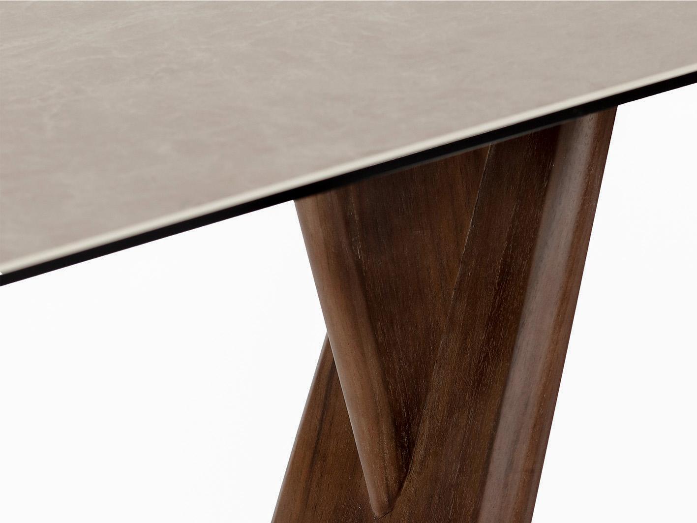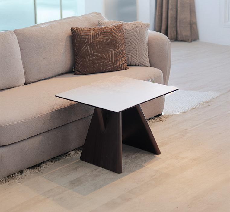 يأتي اللون البيج الهادئ للسطح ليضفي شعورًا بالاتساع والهدوء، بينما توفر القاعدة البنية العميقة توازنًا بصريًا يجمع بين الحداثة والكلاسيكية، ما يجعل الطاولة تتناسب مع مختلف أنماط الديكور الداخلي.
