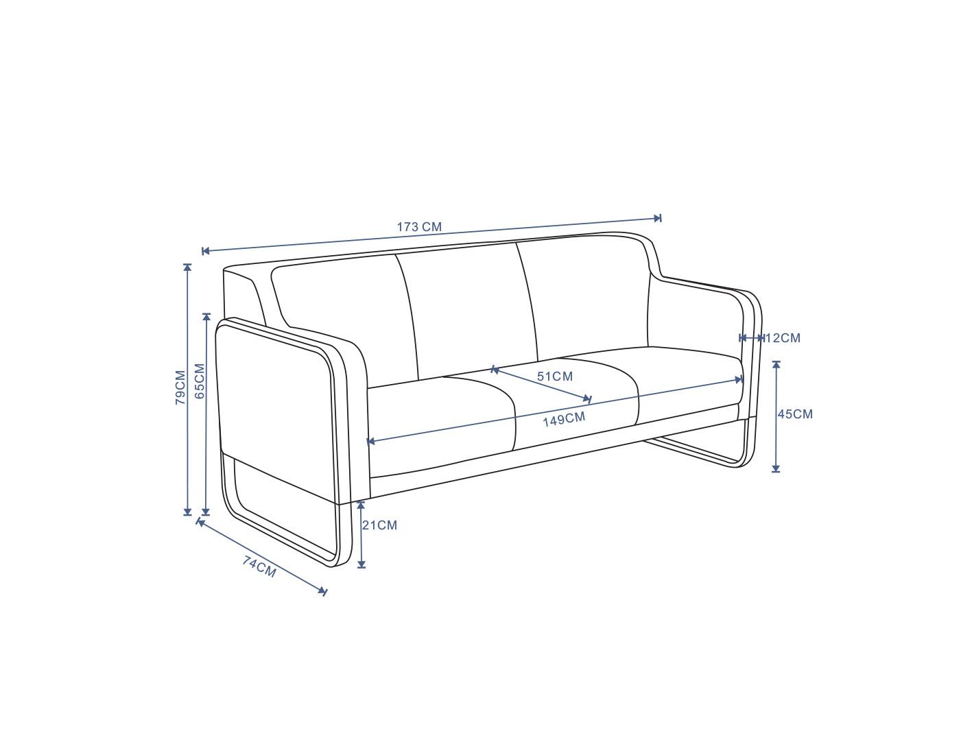 مناسب لمختلف المساحات: حجمه المثالي يجعله خيارًا رائعًا لغرف الانتظار، المكاتب التنفيذية، والاستقبال، حيث يوفر مساحة جلوس مريحة لثلاثة أشخاص دون أن يشغل مساحة كبيرة.