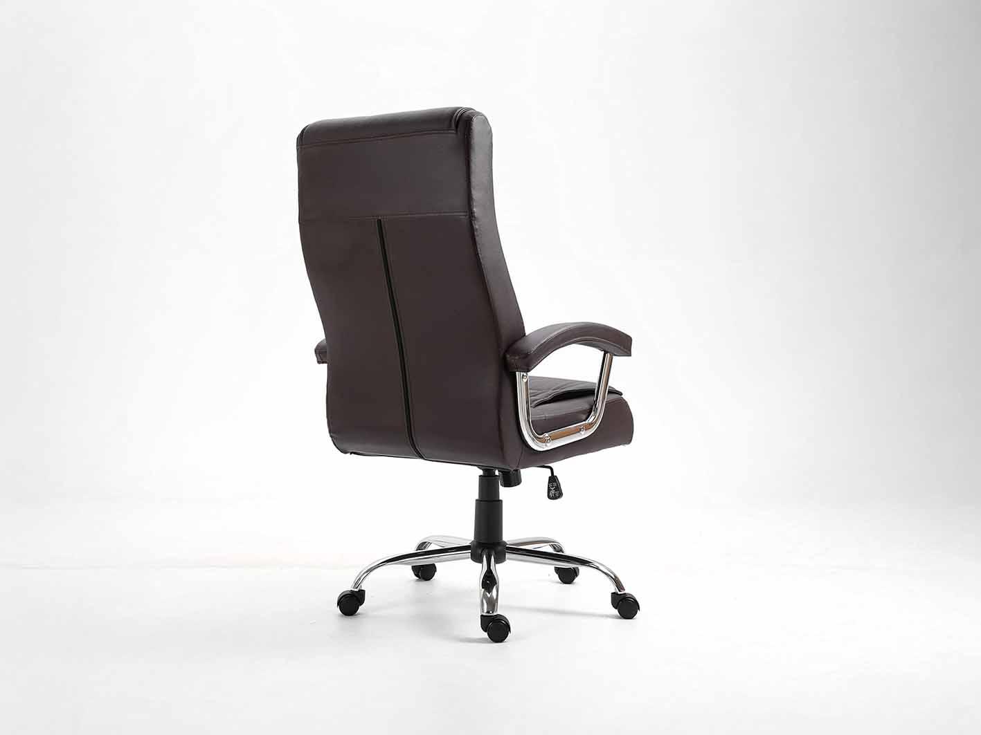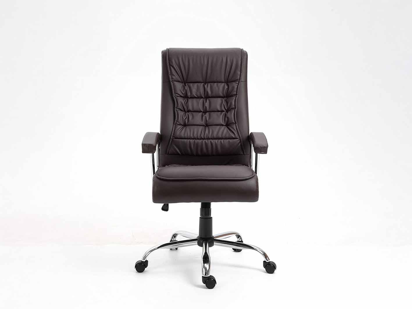 جلد فاخر باللون البني: يتمتع هذا الكرسي بتنجيد عالي الجودة من الجلد الفاخر الذي يضفي مظهرًا راقيًا ويمنح إحساسًا مريحًا ودافئًا. اللون البني الكلاسيكي يضيف لمسة من الأناقة المتطورة لأي مكتب.