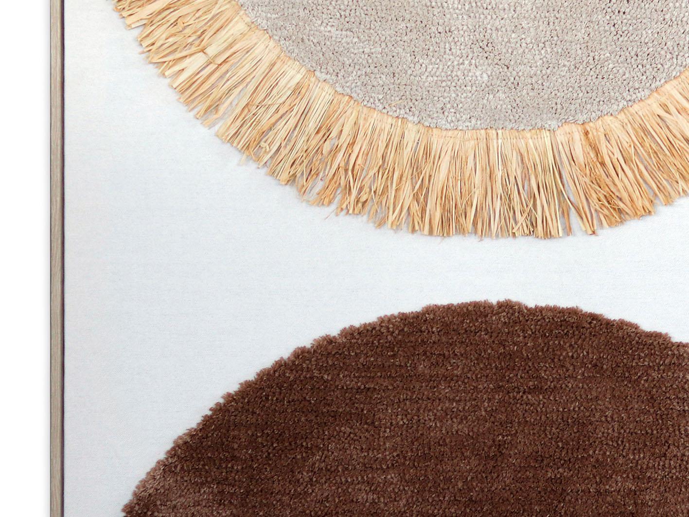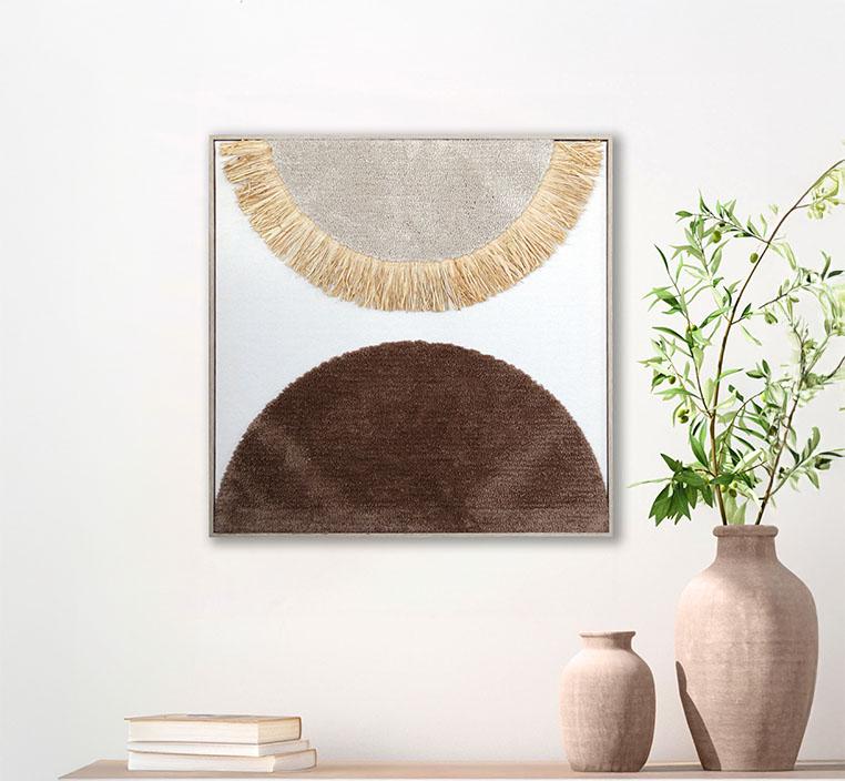تصميم بسيط وأنيق: تعتمد اللوحة على الأشكال الدائرية بألوان محايدة، مما يجعلها قطعة فنية مثالية للتنسيق مع أي نوع من الديكورات العصرية أو الكلاسيكية.
