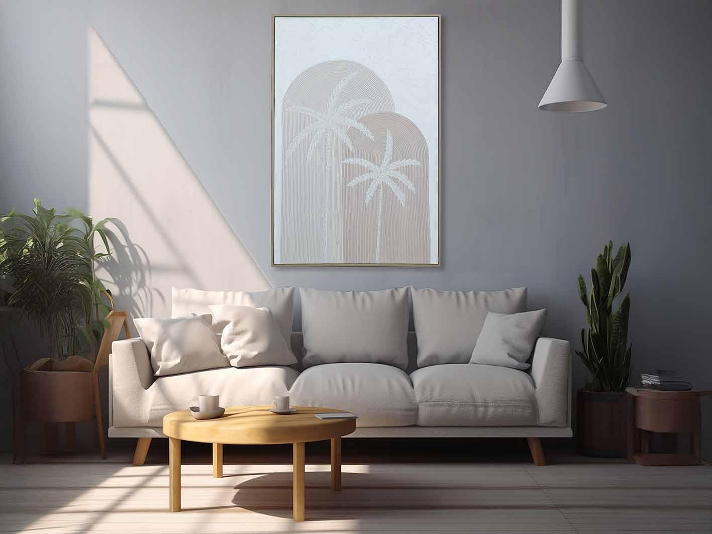 أجواء هادئة ومريحة: بفضل ألوانها الهادئة وتفاصيلها المتقنة، تساعد لوحة النخيل على خلق بيئة مثالية للاسترخاء والتأمل.