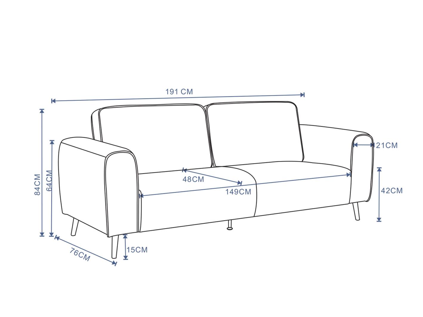 • الأبعاد: العرض 191 سم × العمق 76 سم × الارتفاع 84 سم