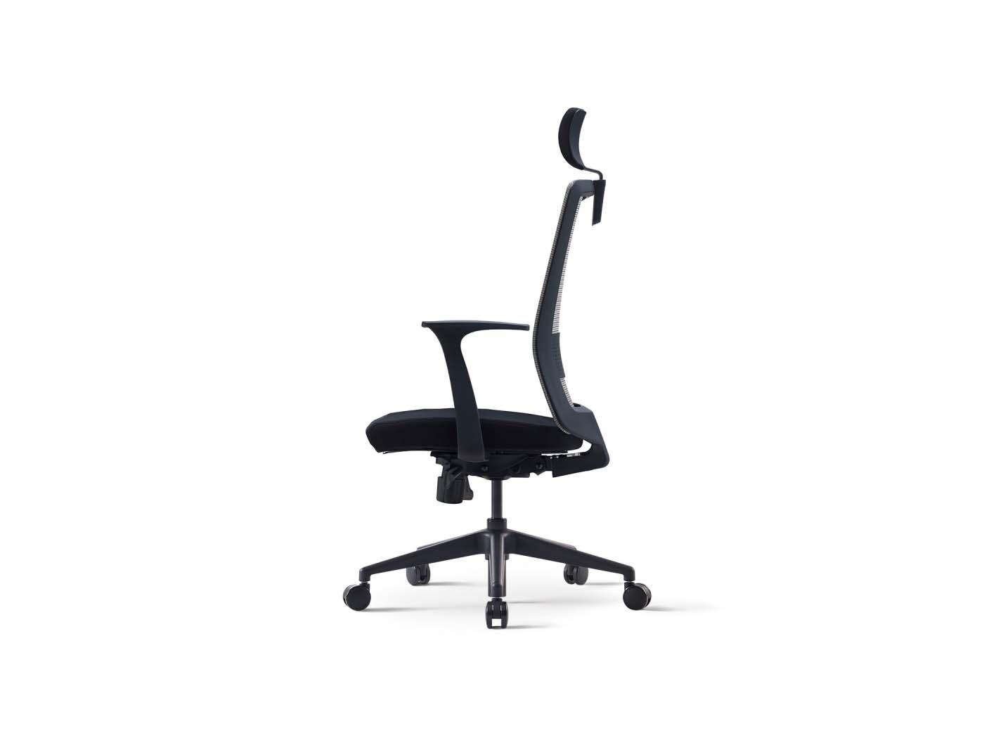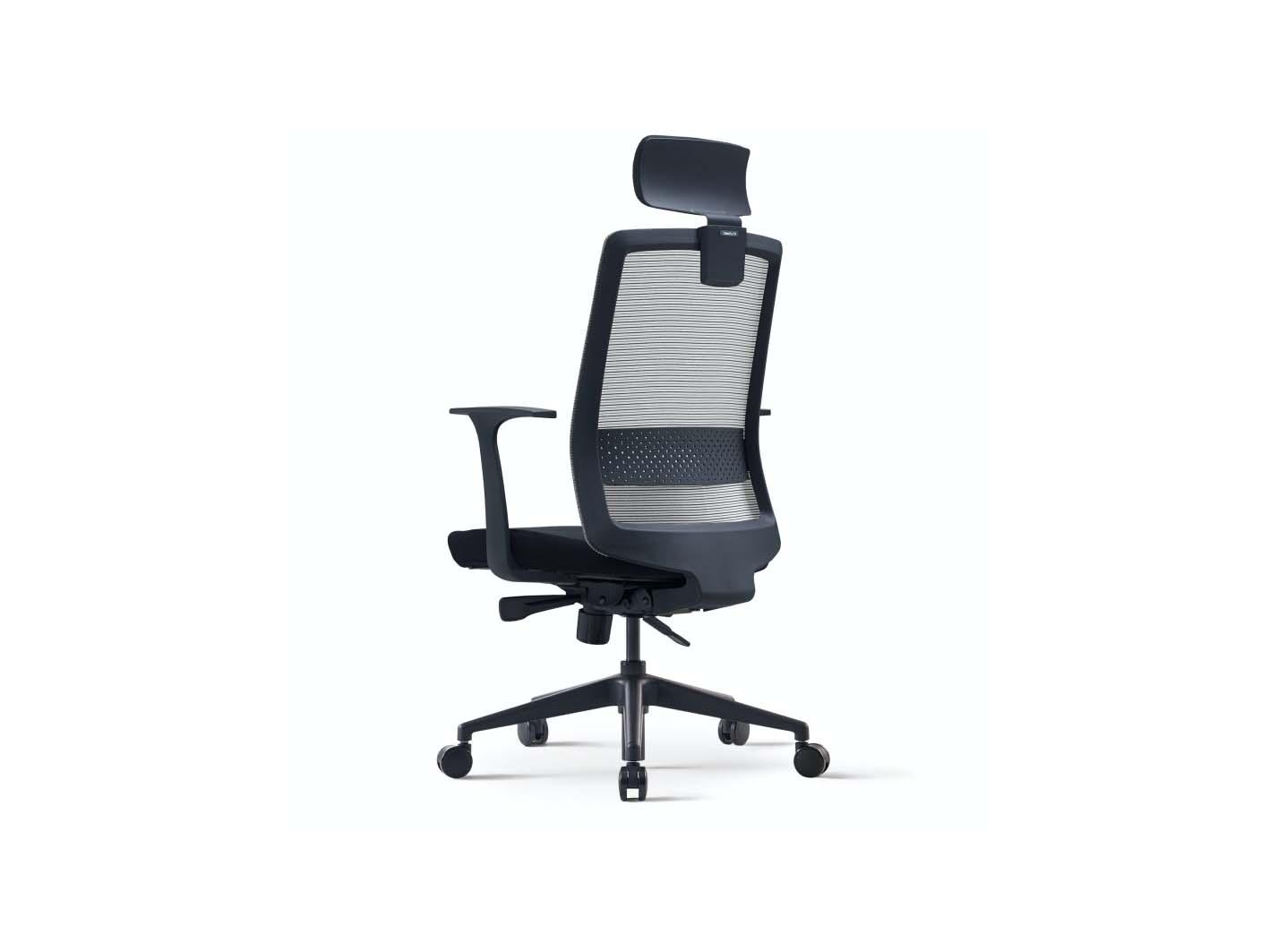يتميز الكرسي بخلفية شبكيية (Mesh Back) تسمح بمرور الهواء وتقلل الحرارة أثناء الجلوس، مع مقعد قماشي فاخر (Fabric Seat) يمنحك راحة تدوم لساعات. يمكنك تعديل ارتفاع مسند الرأس بآلية شد ذاتي لتخصيص الدعم المثالي للرقبة، بينما يوفر نظام دعم أسفل الظهر القابل للتعديل (نوع الوسادة) توازناً مثالياً لراحة الفقرات السفلية.