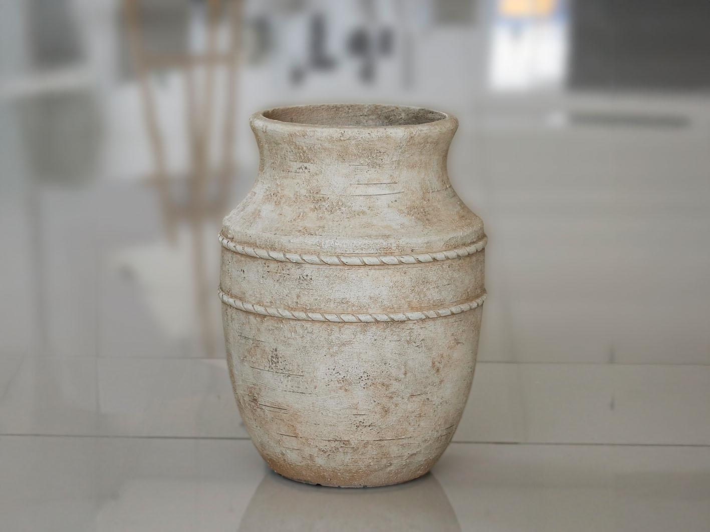 مركن أشجار فخار بيج طويل وودي