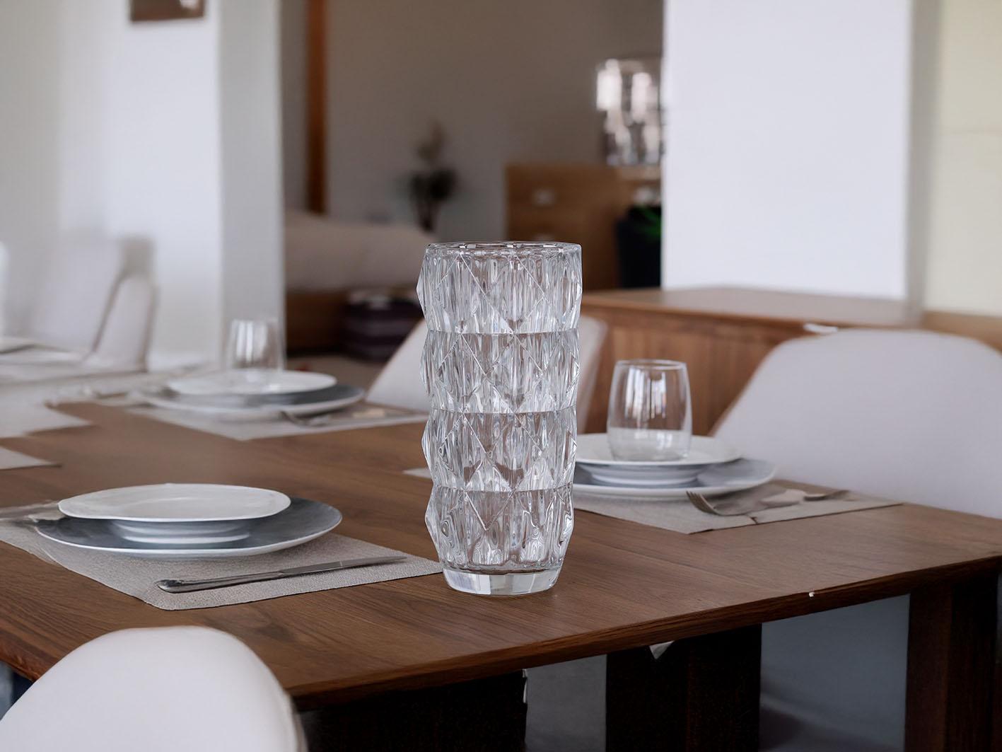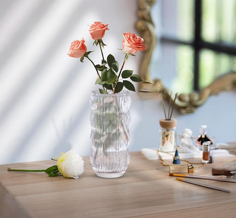 أضف لمسة من الأناقة والهدوء إلى مساحتك مع هذه المزهرية الزجاجية الشفافة المصممة بشكل هندسي عصري يجمع بين البساطة والفخامة. بفضل خامتها العالية الجودة وشفافيتها النقية، تبرز جمال الزهور وتحوّل أي تنسيق زهري إلى تحفة فنية تنبض بالحياة.