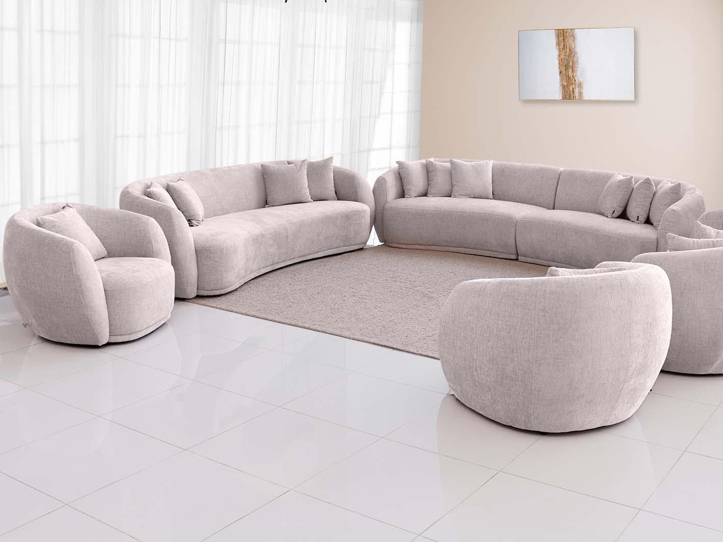 يتميز نابلس كنب ثلاثي بتصميم مستدير انسيابي يضفي لمسة عصرية راقية على أي غرفة معيشة، سواء كانت كلاسيكية أو حديثة الطابع. خطوطه الناعمة وحوافه المنحنية تمنح المكان إحساسًا بالانسجام والدفء، مما يجعله مثاليًا للجلسات العائلية أو الاسترخاء بعد يوم طويل.