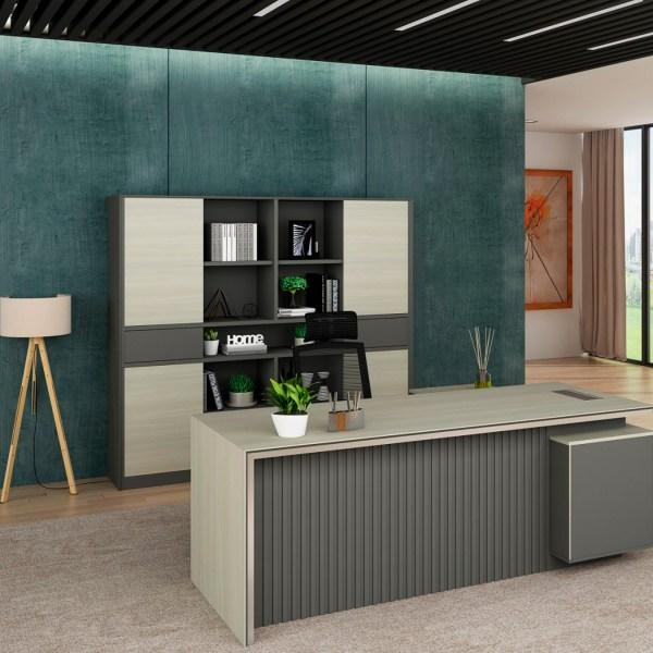 • تصميم عصري وأنيق: اللون الرمادي الأنيق يجعل المكتب متناسبًا مع مختلف أنماط الديكور الحديثة، ليضفي لمسة من الفخامة على مساحتك.