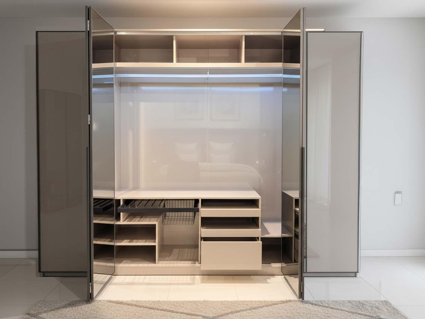 سهولة الاستخدام والصيانة: الدولاب مزود بآلية فتح أبواب انزلاقية تسهل الوصول إلى المحتويات بدون الحاجة إلى المساحة الكبيرة التي تتطلبها الأبواب التقليدية. كما أن الخامات المعتمدة سهلة التنظيف والصيانة، مما يحافظ على مظهره الجديد لفترة طويلة.