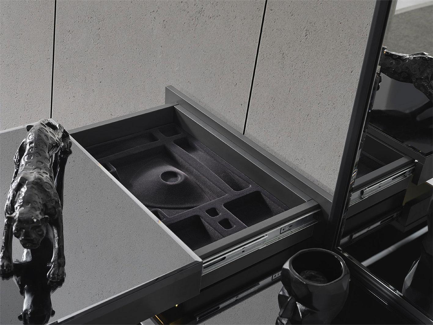 تصميم متين وجودة استثنائية: مصنوعة بالكامل من خشب الصلب لضمان أقصى درجات القوة والمتانة. لمسة جمالية راقية: يجمع اللون رمادي داكن مائل للأسود مع الخشب الصلب بين الأناقة الكلاسيكية والطابع العصري. أدراج بتقنية الدفع الذاتي: توفر لك سهولة في الفتح والإغلاق، مما يجعل استخدام الأثاث أكثر راحة وانسيابية. مساحات تخزين عملية: تشمل أدراجًا مخصصة للإكسسوارات للحفاظ على أغراضك مرتبة ومنظمة. راحة مثالية: تصميم السرير يوفر لك أقصى درجات الاسترخاء والراحة للنوم العميق.