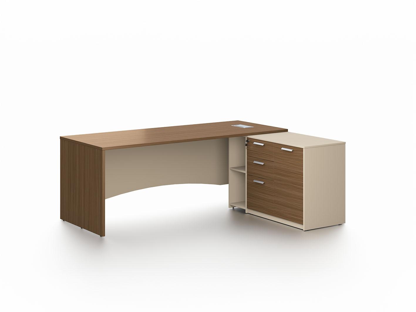 2. وحدات تخزين مرنة: يضم درجًا مزودًا بقفل ومقبض من الألمنيوم، بالإضافة إلى رفوف جانبية لتخزين الملفات والمستلزمات الأخرى. منزلقات الأدراج ثلاثية التحمل تضمن حركة سلسة ومريحة.