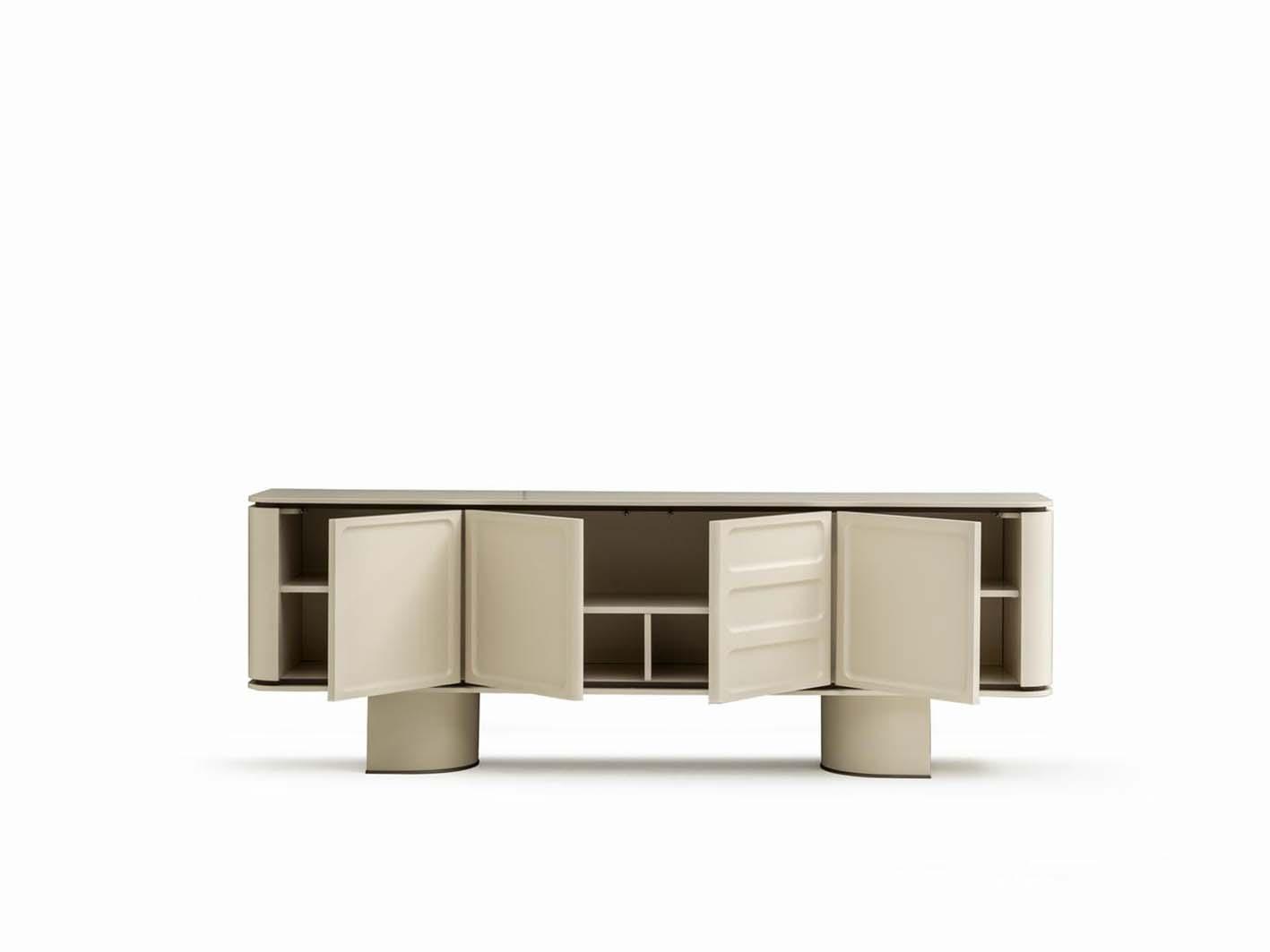 تخزين وتنظيم مثالي: يوفّر الكونسول بأبوابه الأربعة مساحة واسعة ومنظمة للحفاظ على ترتيب الأغراض، مما يضمن نظامًا داخليًا مرتبًا.