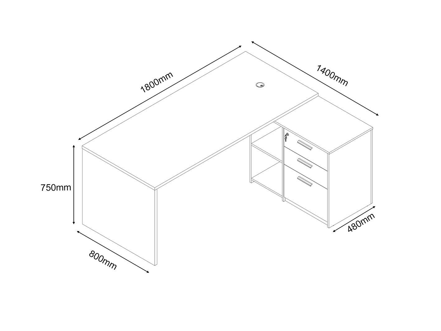 يحتوي المكتب على 3 أدراج تتيح لك تنظيم مستلزماتك بسهولة، بالإضافة إلى رفَّين يوفران مساحة إضافية لوضع الكتب، الملفات، أو حتى العناصر الزخرفية.