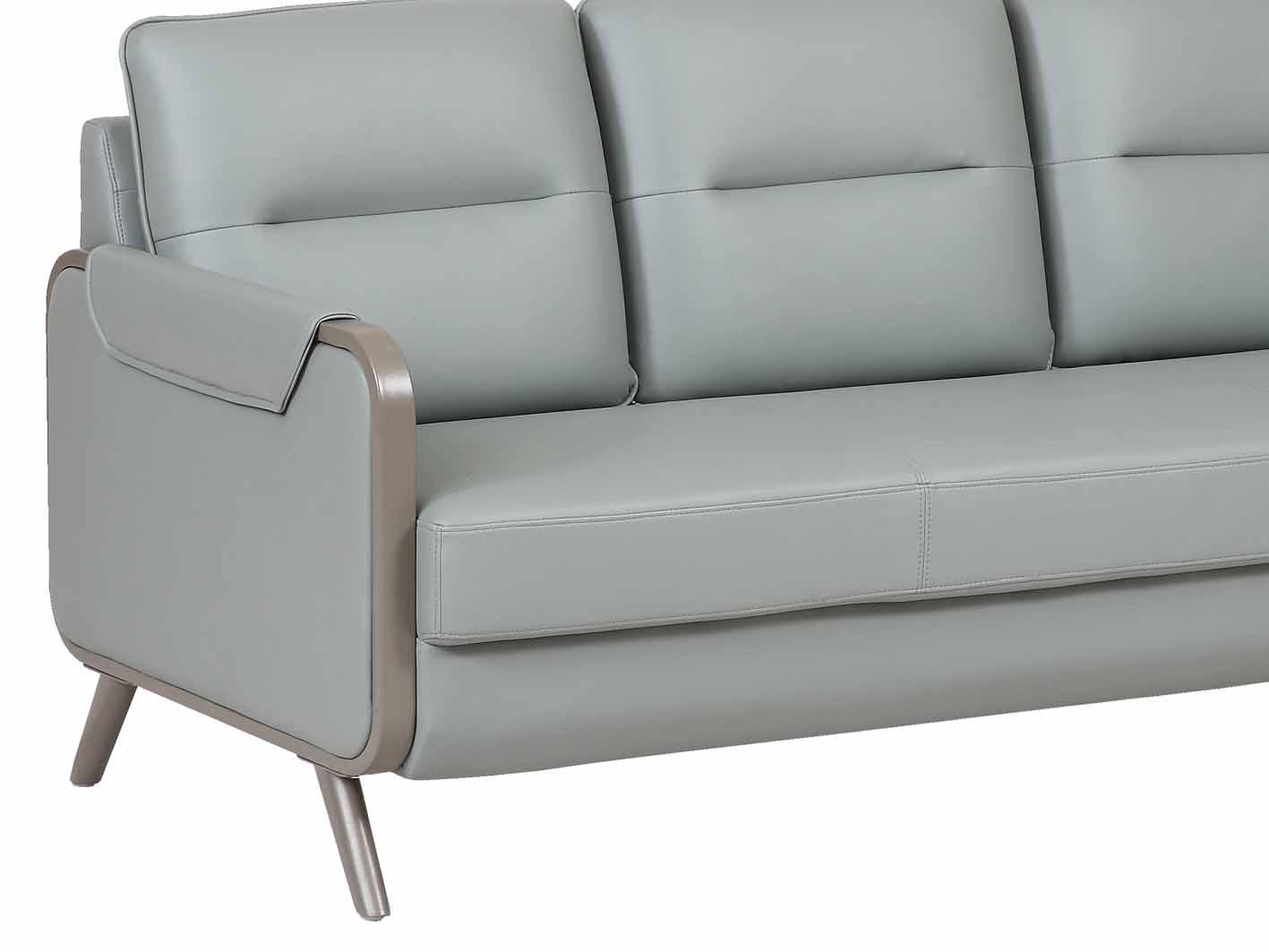 غطاء الجلد الصناعي فخم وسهل التنظيف. وبالتالي، يحافظ على مظهر الكنب الأنيق لفترة طويلة ويضفي لمسة رمادية راقية.
