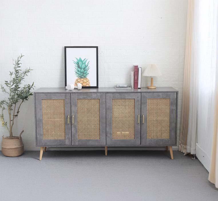 تم تصنيع بوفيه رينزو من خشب MDF عالي الجودة، المقاوم للرطوبة والخدوش، ليمنحك متانة تدوم مع الاستخدام اليومي، دون المساومة على المظهر الراقي. يتميز التصميم بأربعة أبواب أنيقة بآلية فتح سلسة، تتيح لك تنظيم الأغراض بشكل مرتب وسهل الوصول.