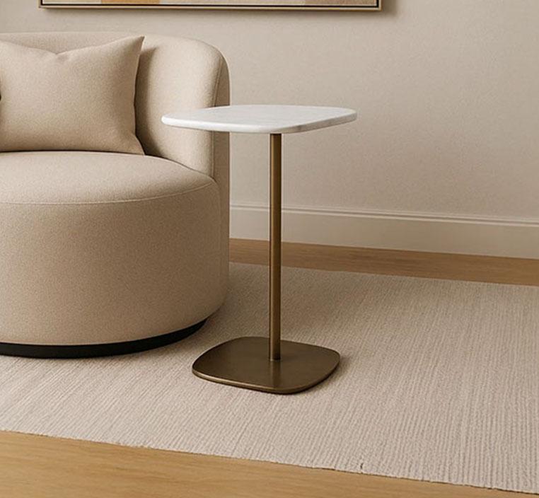سبيندر طاولة خدمة بقاعدة باللون النحاسي المعتق وودي - رخام-أبيض