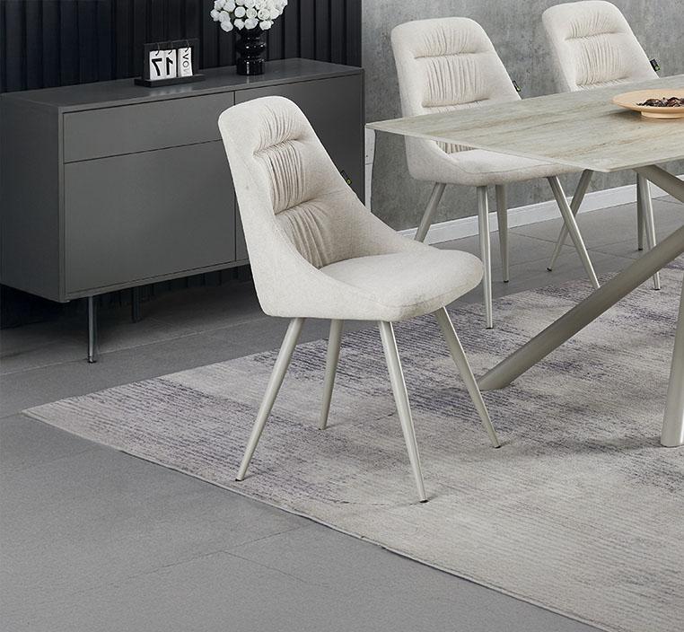 يأتي الكرسي مبطناً برغوة عالية الكثافة، ومغلفاً بقماش بملمس الكتان الفاخر، ليمنحك إحساسًا بالنعومة والراحة مع لمسة راقية. إنه كرسي طعام مريح من قماش الكتان يتفوق في الراحة والأناقة.