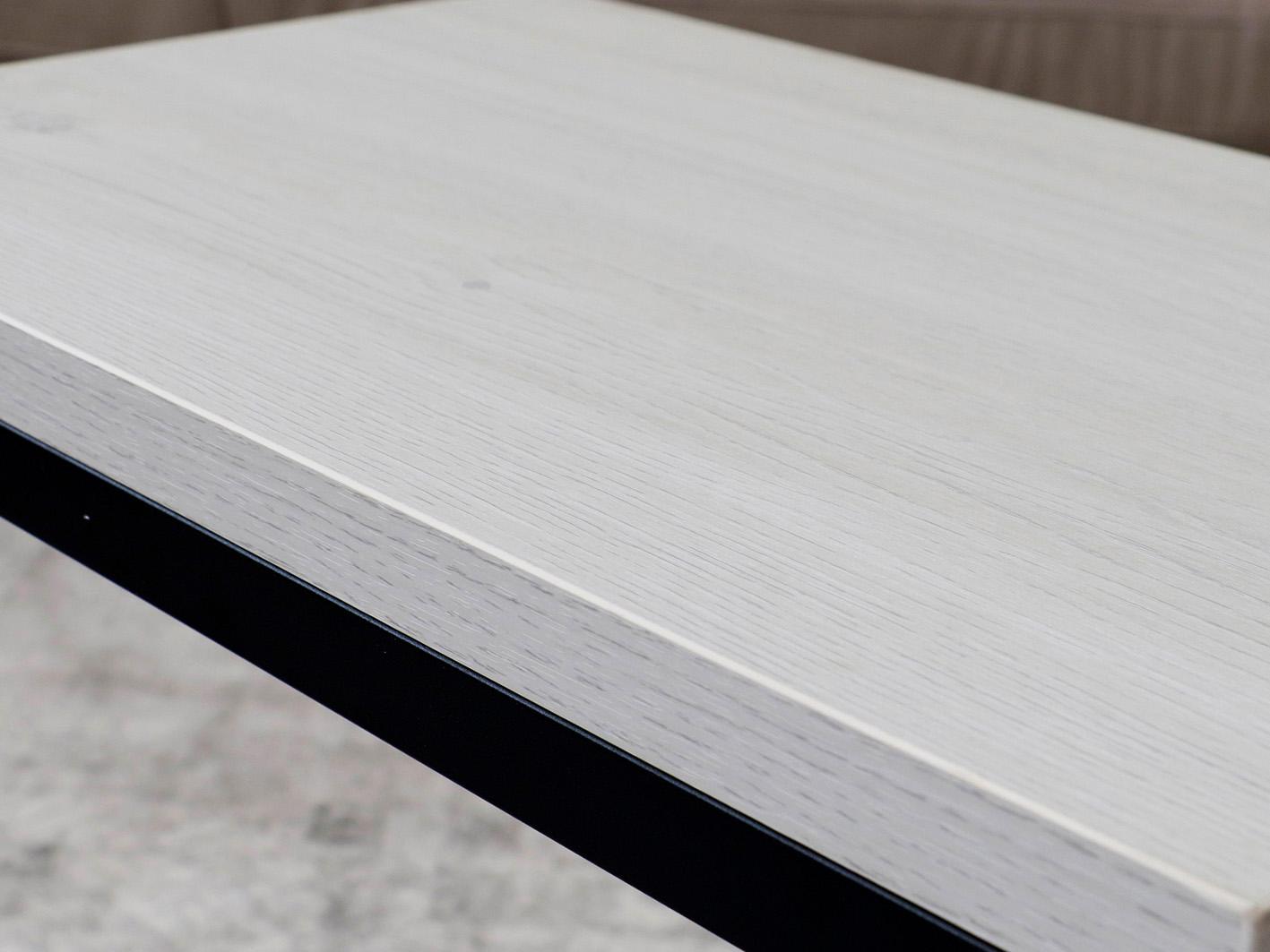 أرجل الطاولة مصنوعة من المعدن القوي والمطلي باللون الأسود، مما يوفر للطاولة ثباتاً استثنائياً ويحميها من الاهتزاز أو التحرك غير المرغوب فيه. هذا التصميم الذكي يجمع بين المتانة والشكل الجمالي العصري، مما يجعلها قطعة أثاث عملية وجذابة في الوقت ذاته.
