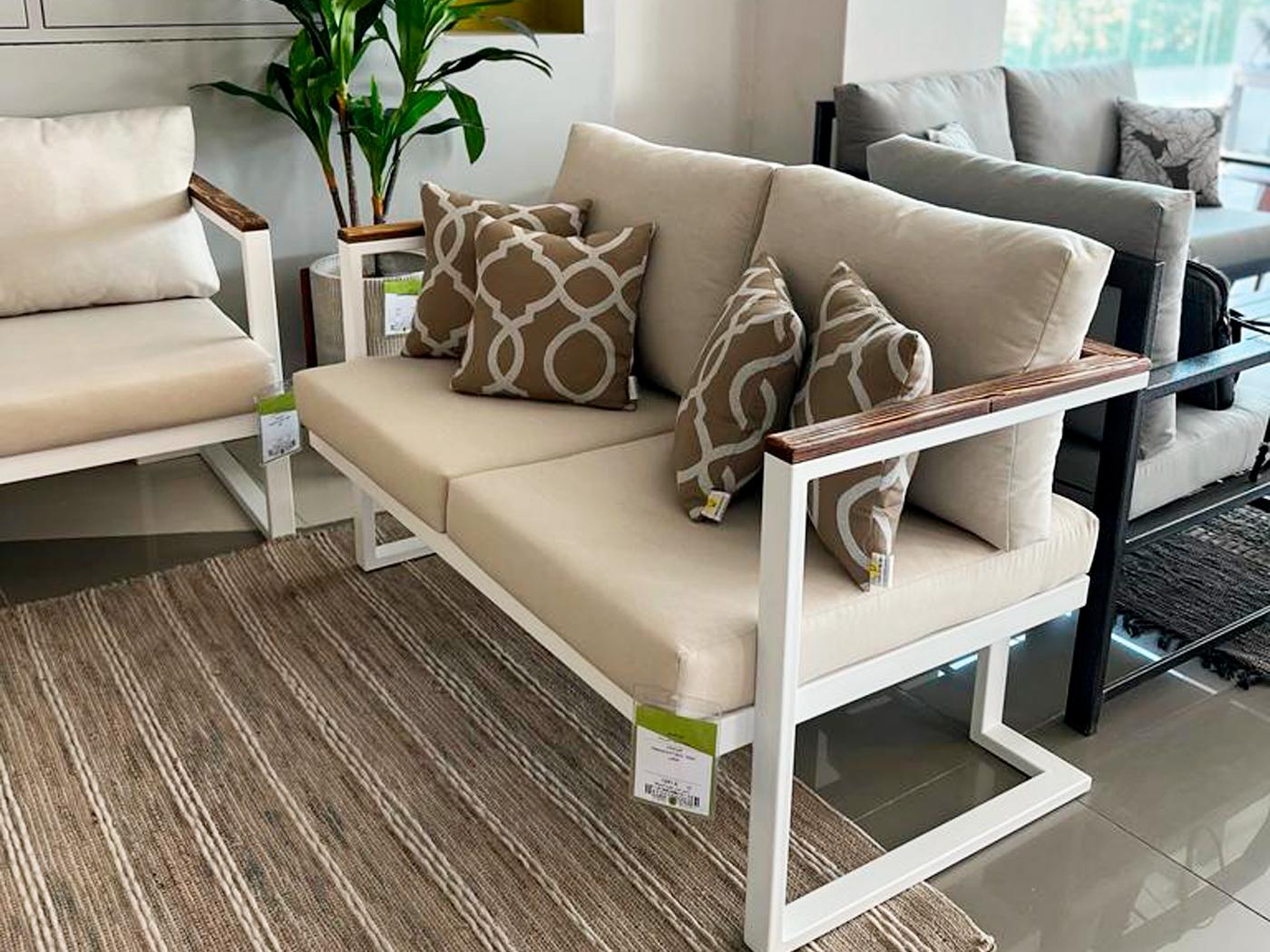 تتميز بتصميمها العصري الذي يبرز بوضوح بين الأثاث الخارجي التقليدي. مع قماشها البيج الفاتح، تمنحك الكنبة إحساسًا بالراحة والهدوء، بينما تضيف أناقة خاصة لأي حديقة أو تراس. القماش المستخدم قوي للغاية، حيث يتحمل أشعة الشمس المباشرة دون أن يتأثر لونه أو جودته، بالإضافة إلى مقاومته العالية للمياه، مما يجعلها الخيار الأمثل للمناطق ذات الرطوبة العالية أو تلك المعرضة للأمطار الخفيفة.