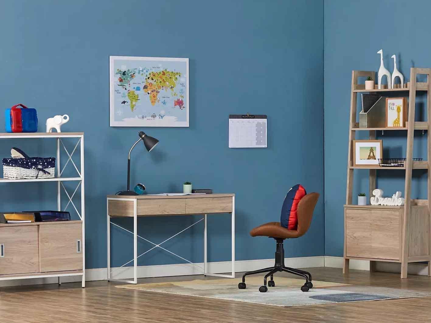 يتمتع المكتب بخطوط نظيفة وتصميم عصري، مما يمنح الغرفة مظهرًا جذابًا ومتناسقًا مع باقي أثاث الأطفال.