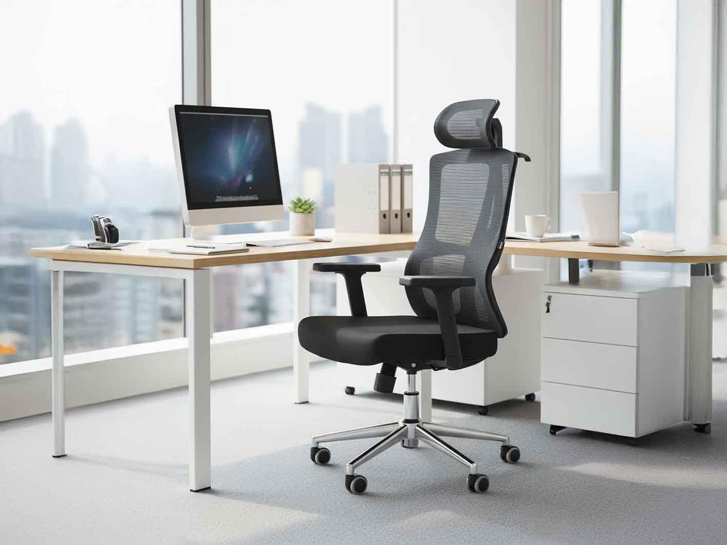 يأتي مسند الظهر بنسيج شبكي عالي الجودة يسمح بمرور الهواء، مما يحافظ على انتعاشك طوال اليوم ويمنع التعرق أثناء الجلوس لساعات طويلة.