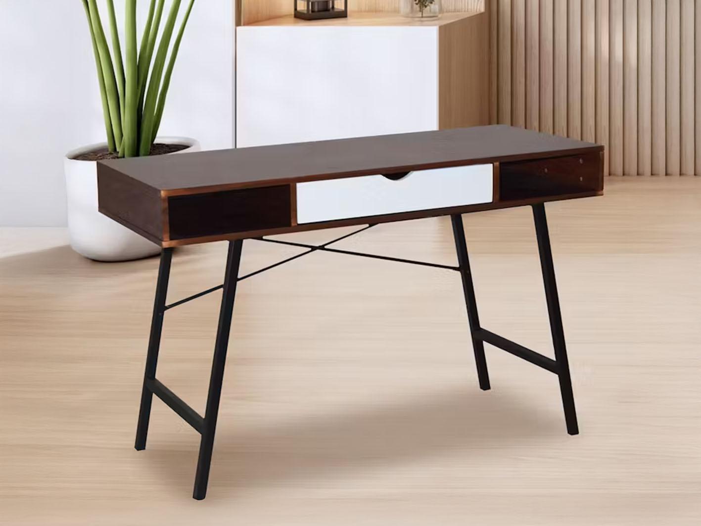 يحتوي المكتب على درج واحد لتخزين الأدوات والملفات المهمة، بالإضافة إلى رفّين مفتوحين للكتب أو العناصر الزخرفية، مما يساعدك على الحفاظ على ترتيب المكتب بسهولة.