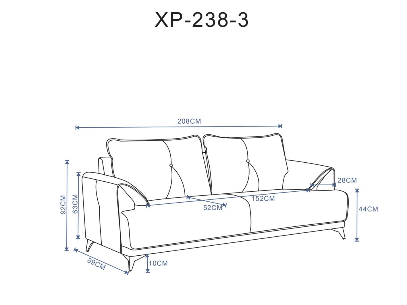• الأبعاد: العرض 208 سم × العمق 90 سم × الارتفاع 92 سم