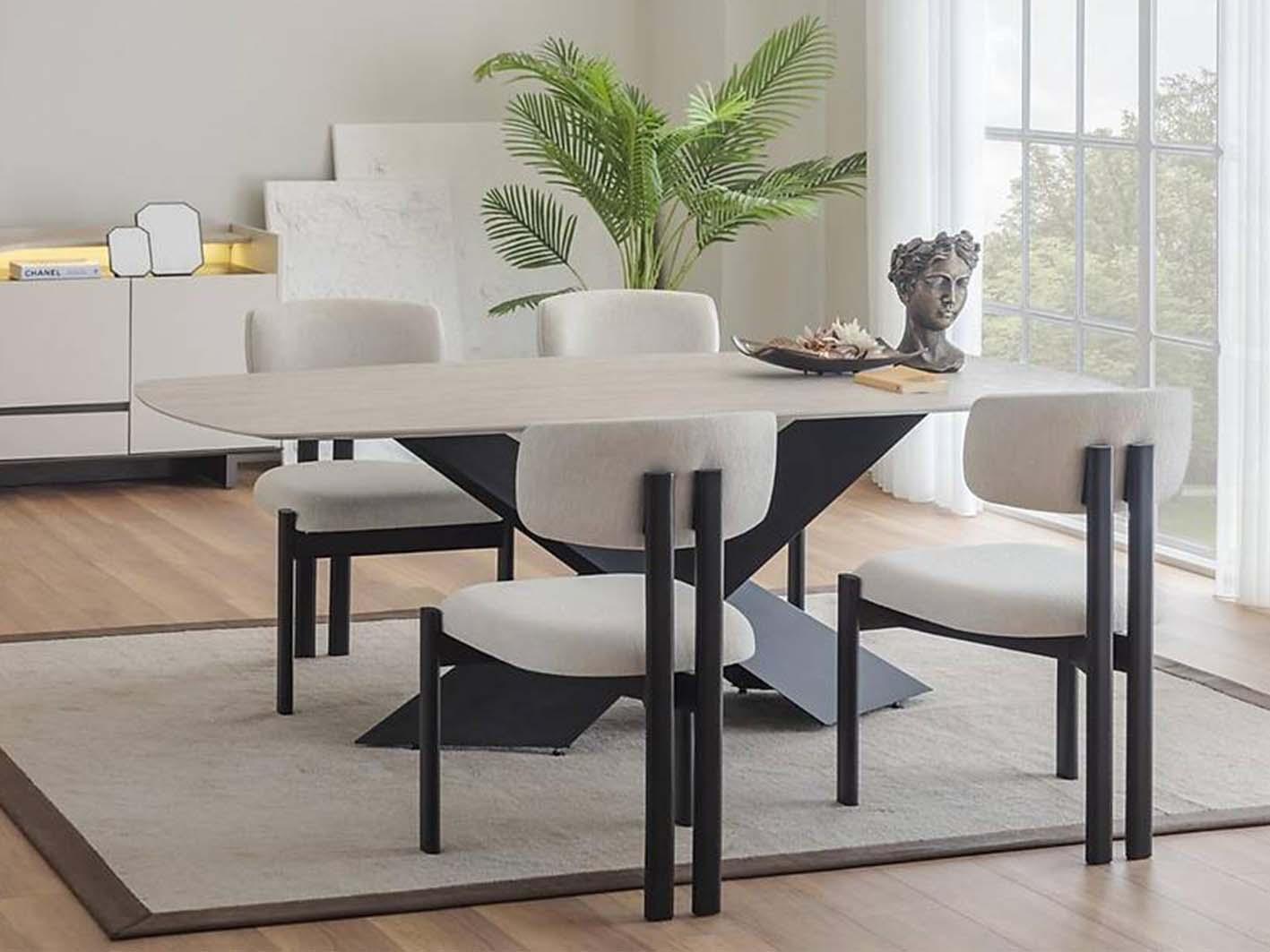 في غرفة الطعام: يوفر كرسي بيلا الراحة والأناقة في آنٍ واحد ليكون رفيقًا مثاليًا أثناء وجبات الطعام مع طاولة طعام بيلا .