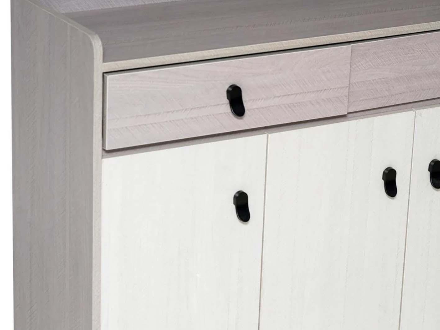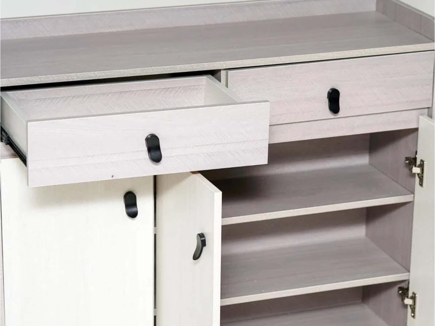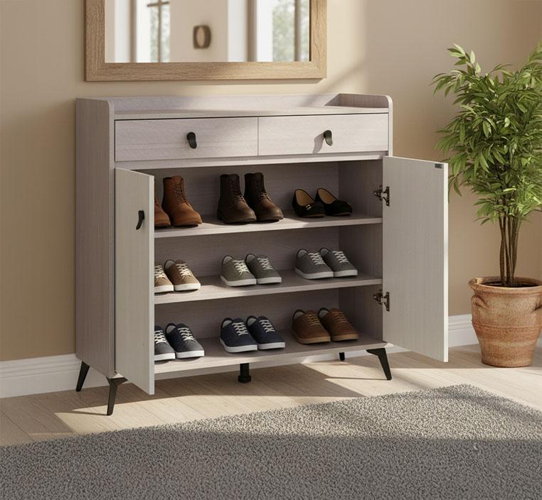 يتميز بثلاثة أبواب واسعة لتخزين الملابس والأغراض الشخصية بسهولة، بالإضافة إلى درجين داخليين مثاليين لتخزين الإكسسوارات الصغيرة مثل الأحزمة والمجوهرات والأغراض اليومية. هذا التوازن بين الأبواب والدرجين يعزز الوظيفة العملية دون التضحية بالأناقة، ويجعل كل شيء مرتبًا وفي متناول يدك.